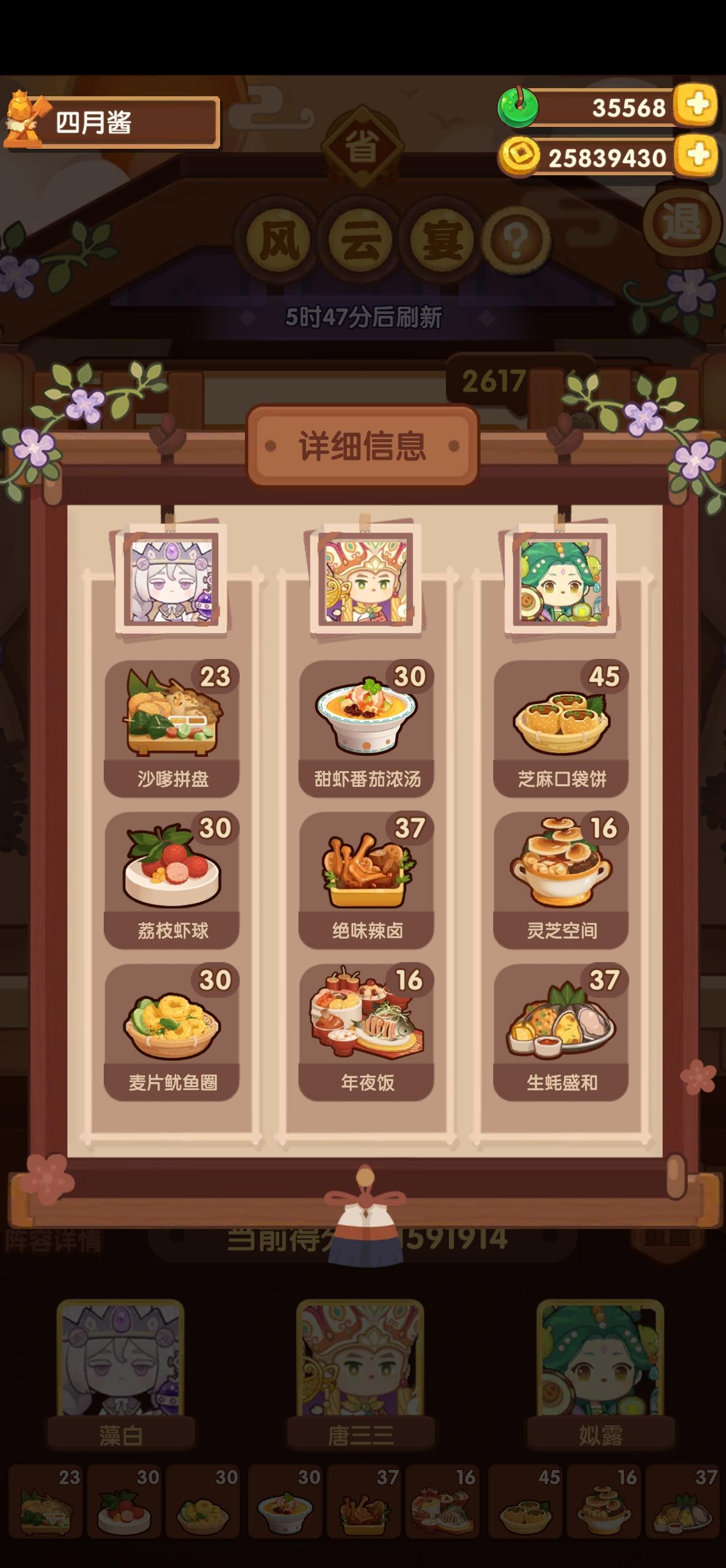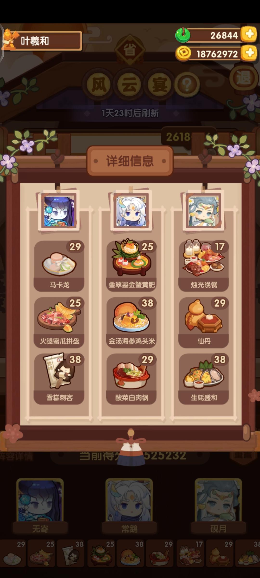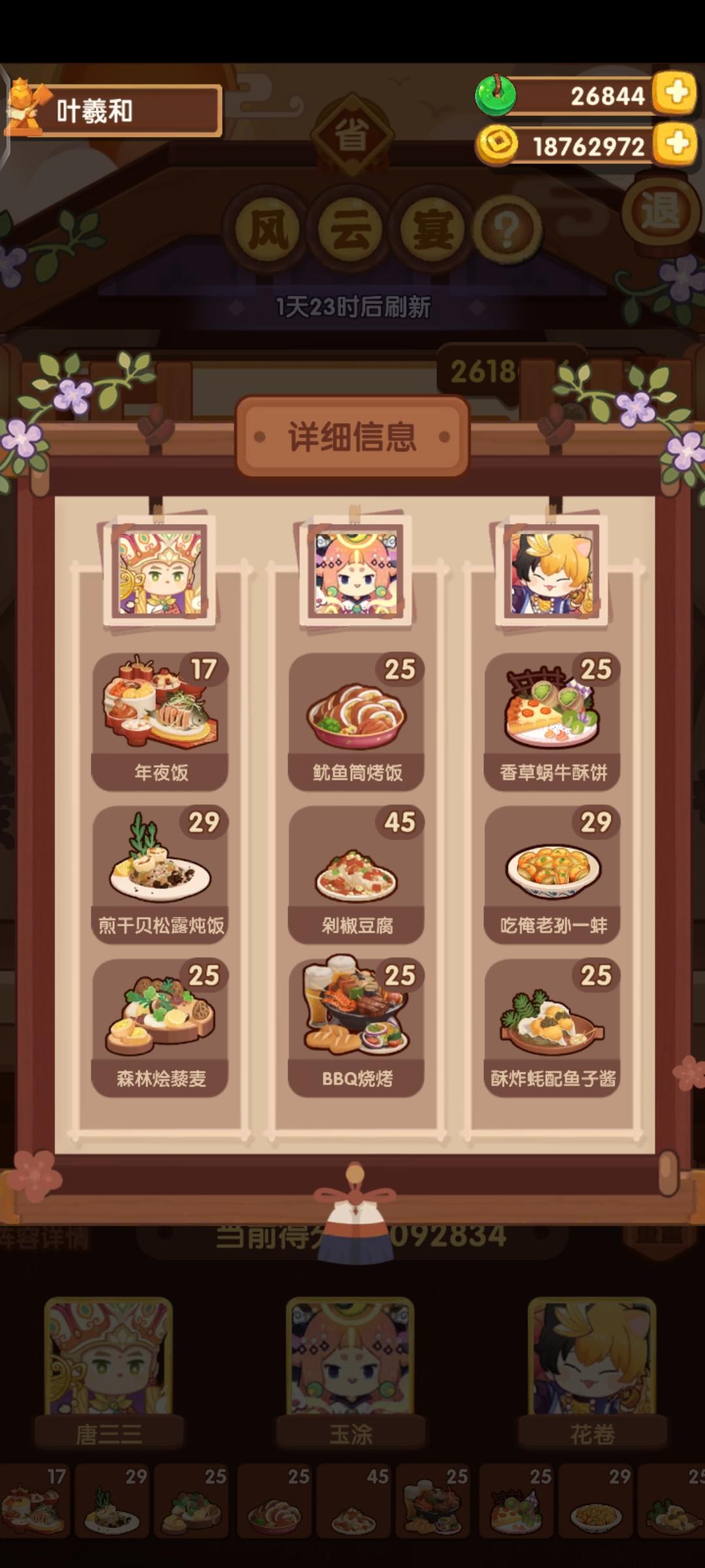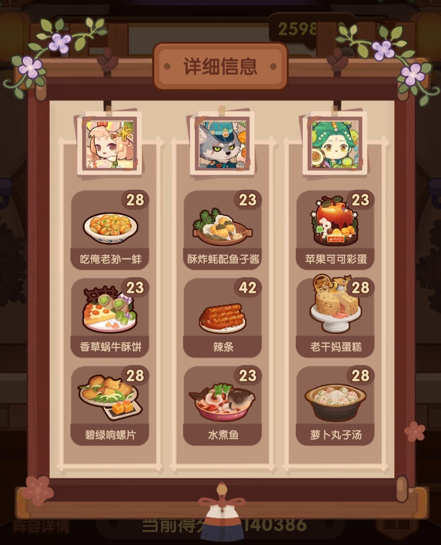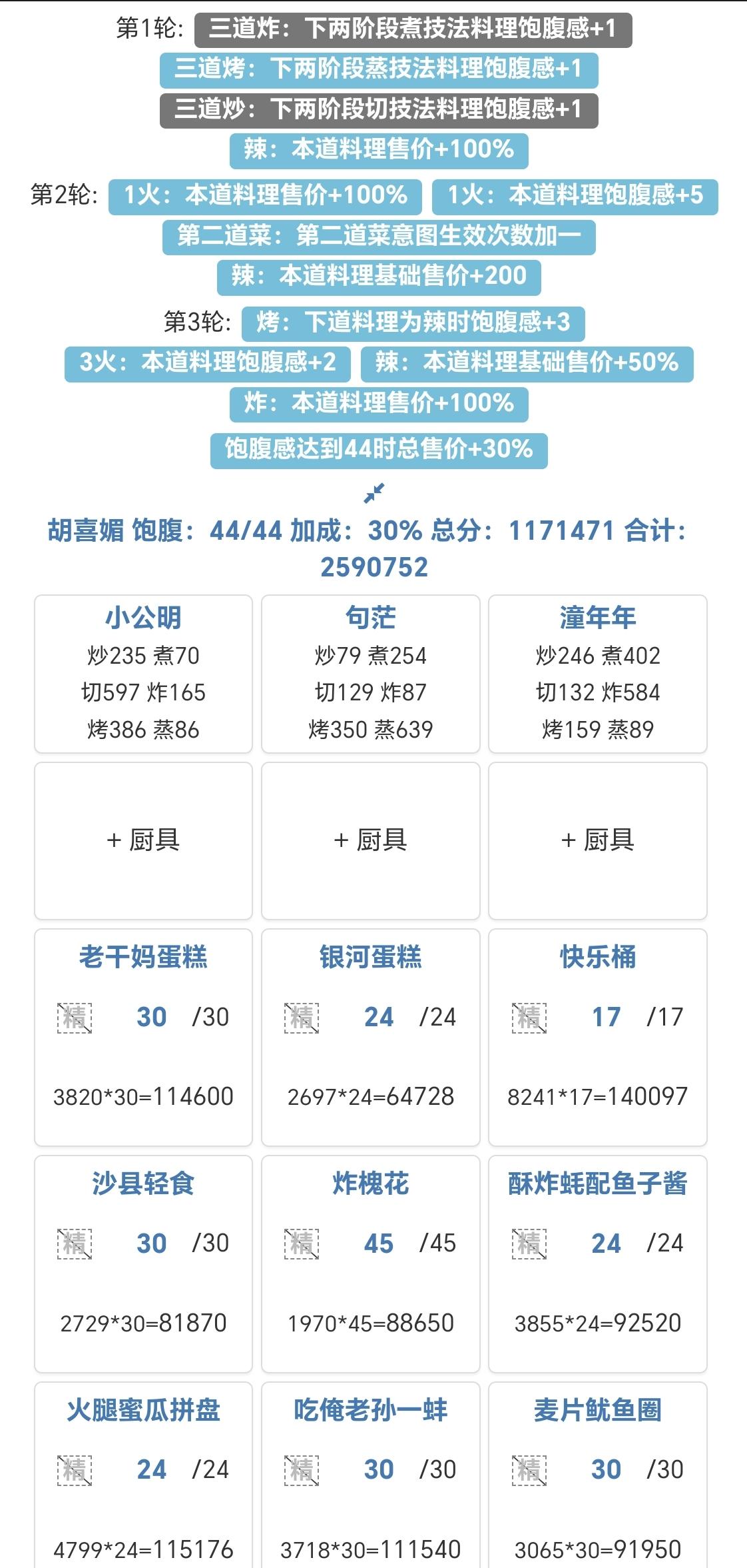 小号唐三三没修,干脆换人了,为了省鱼翅咖喱,分有点少,没厨具好像分不够