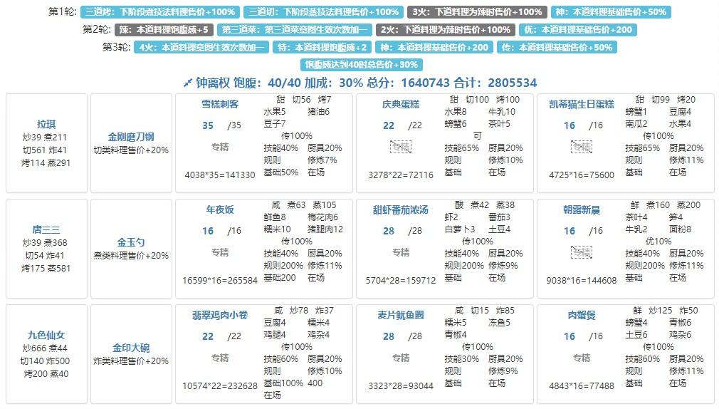 🧱前排提醒⭐️想较7.7,成功从三档进步到稳四档,方案需要大量专精和新手池厨具,具体见P1-2。基修高可以不管厨具,效果图见P3-4。⭐️该方案无特别好的优化菜谱,建议用l图鉴网调试。
