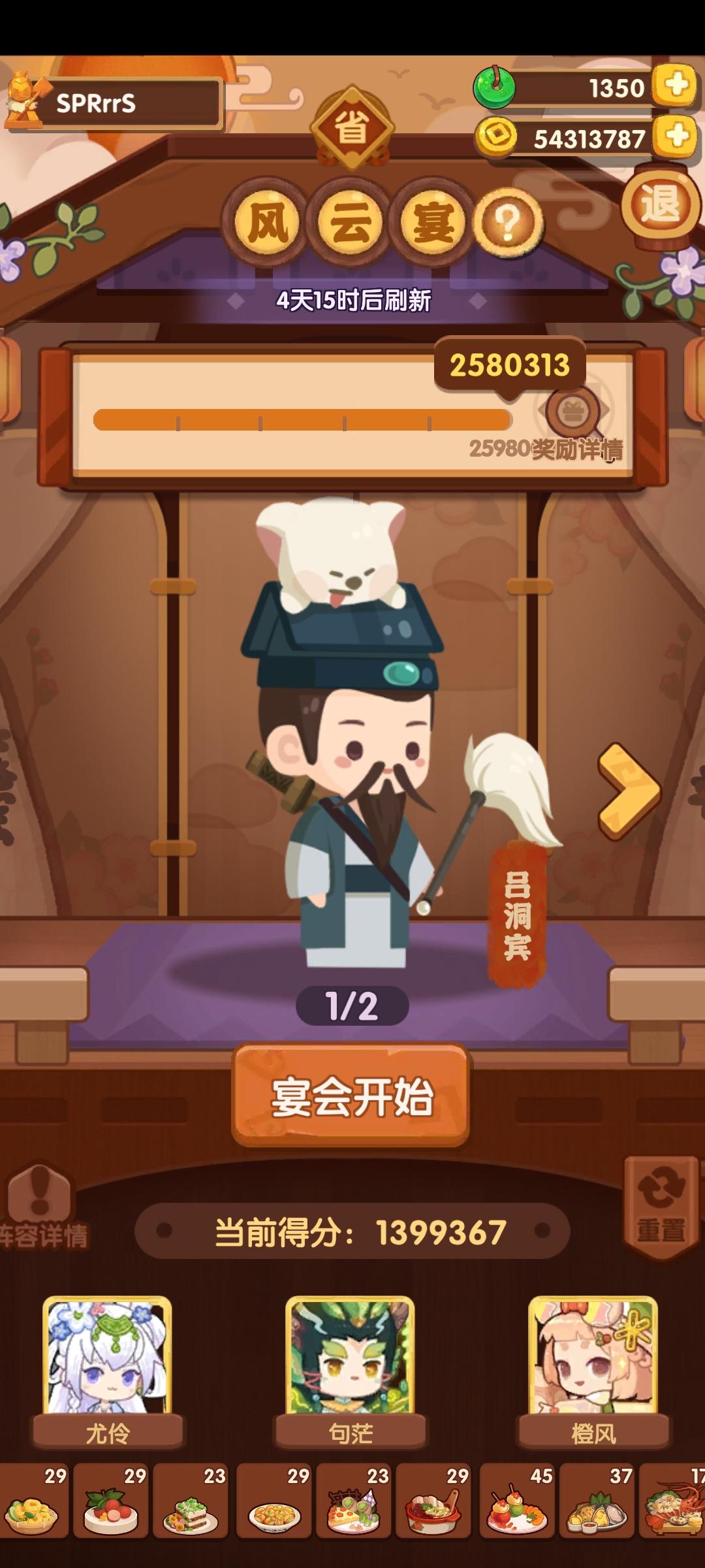 风云宴11.24 韩湘子15 钟离权40 总分280w