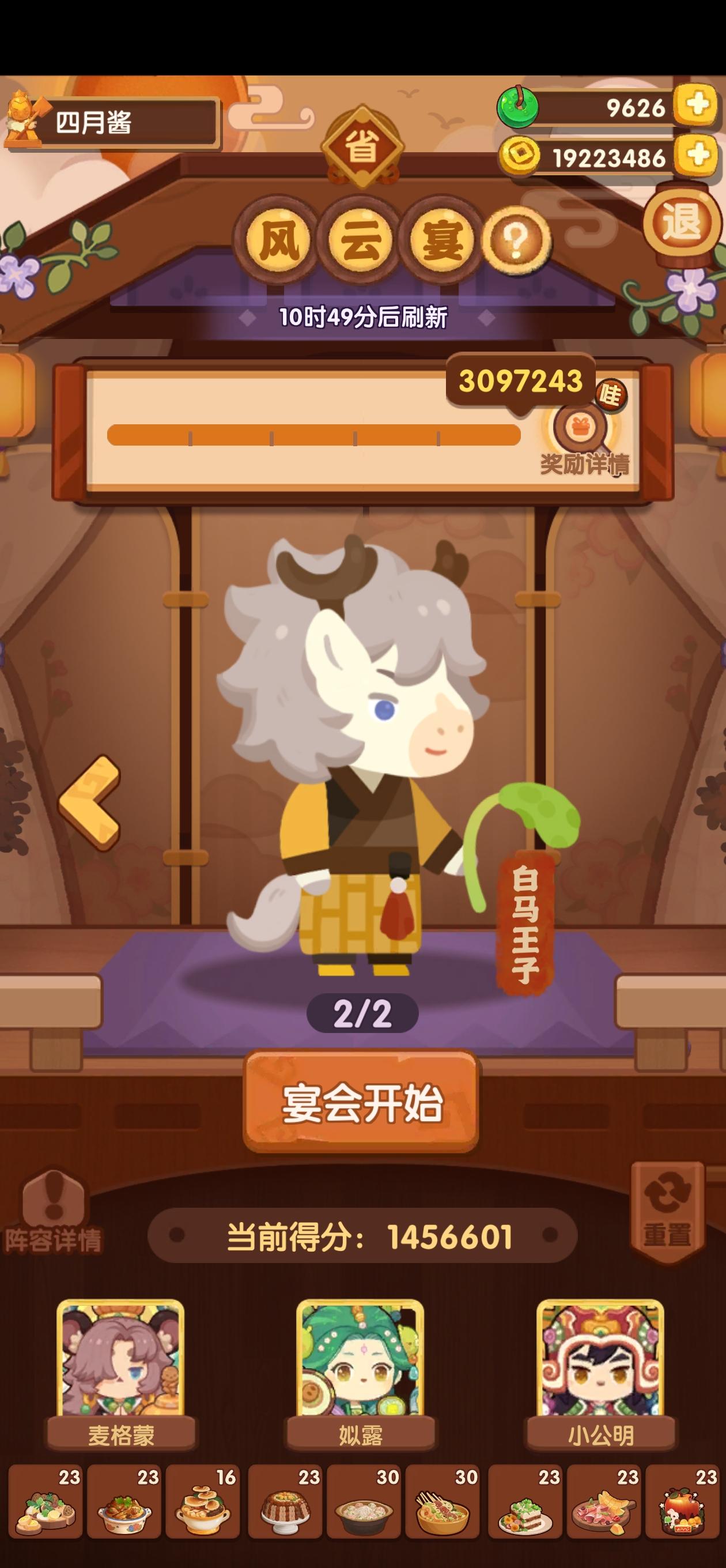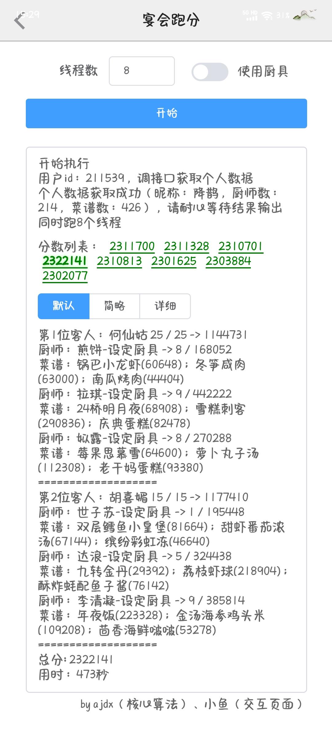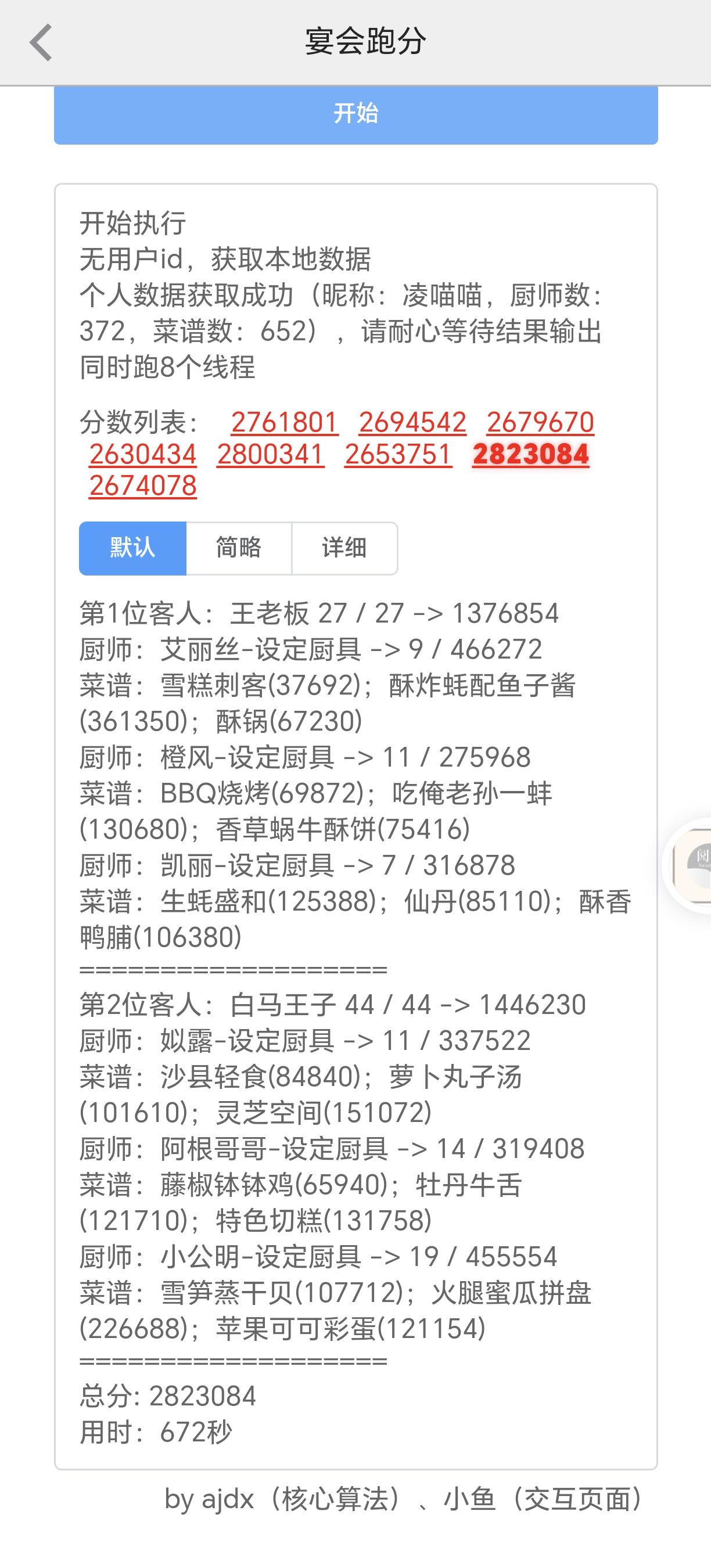 这次宴会挺简单的,跑的时候就没设置太高的分数过线就行了