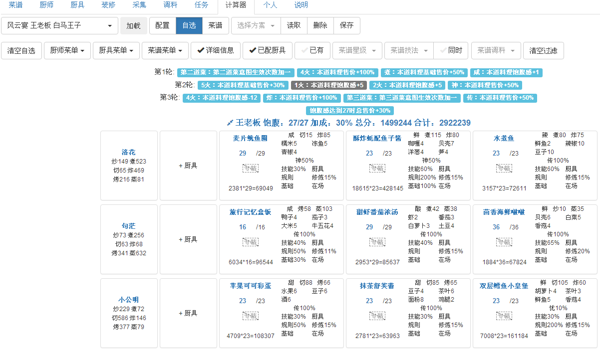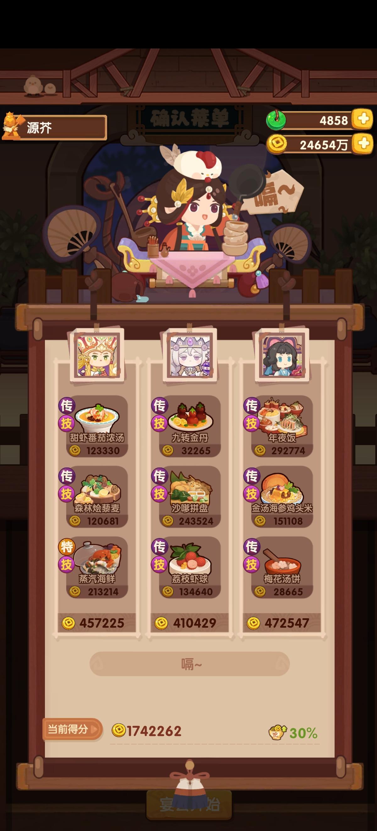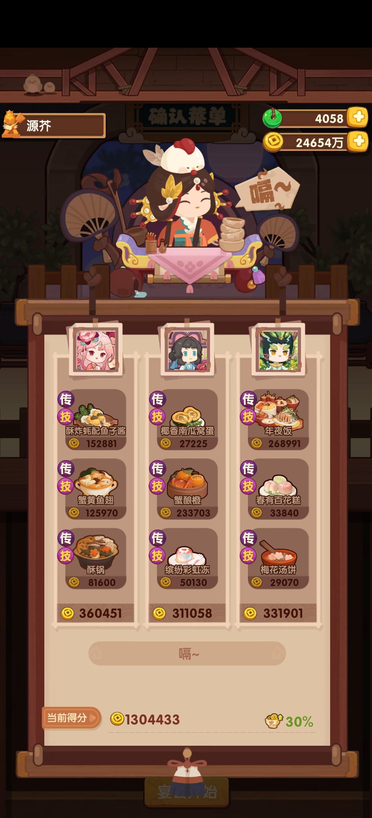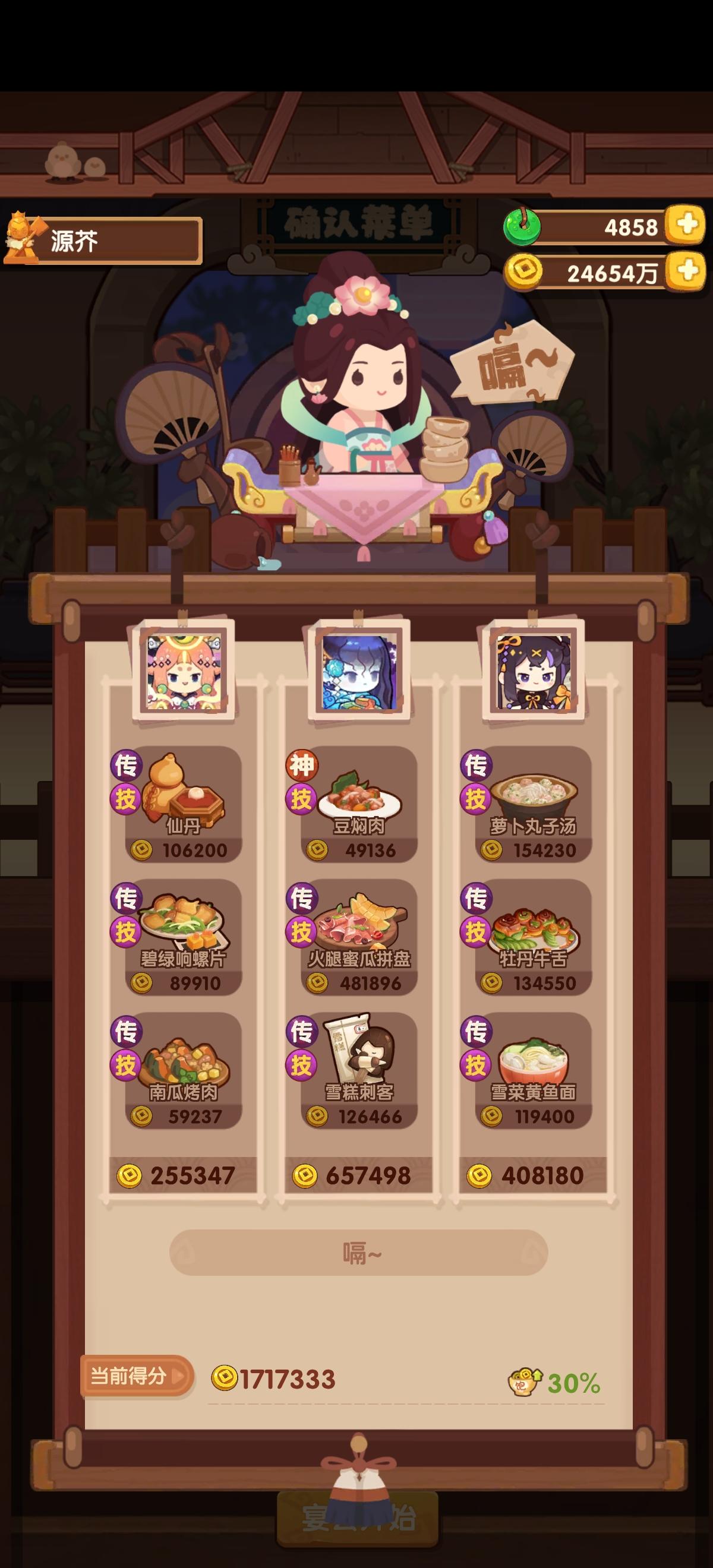 这次宴会挺简单的,跑的时候就没设置太高的分数过线就行了