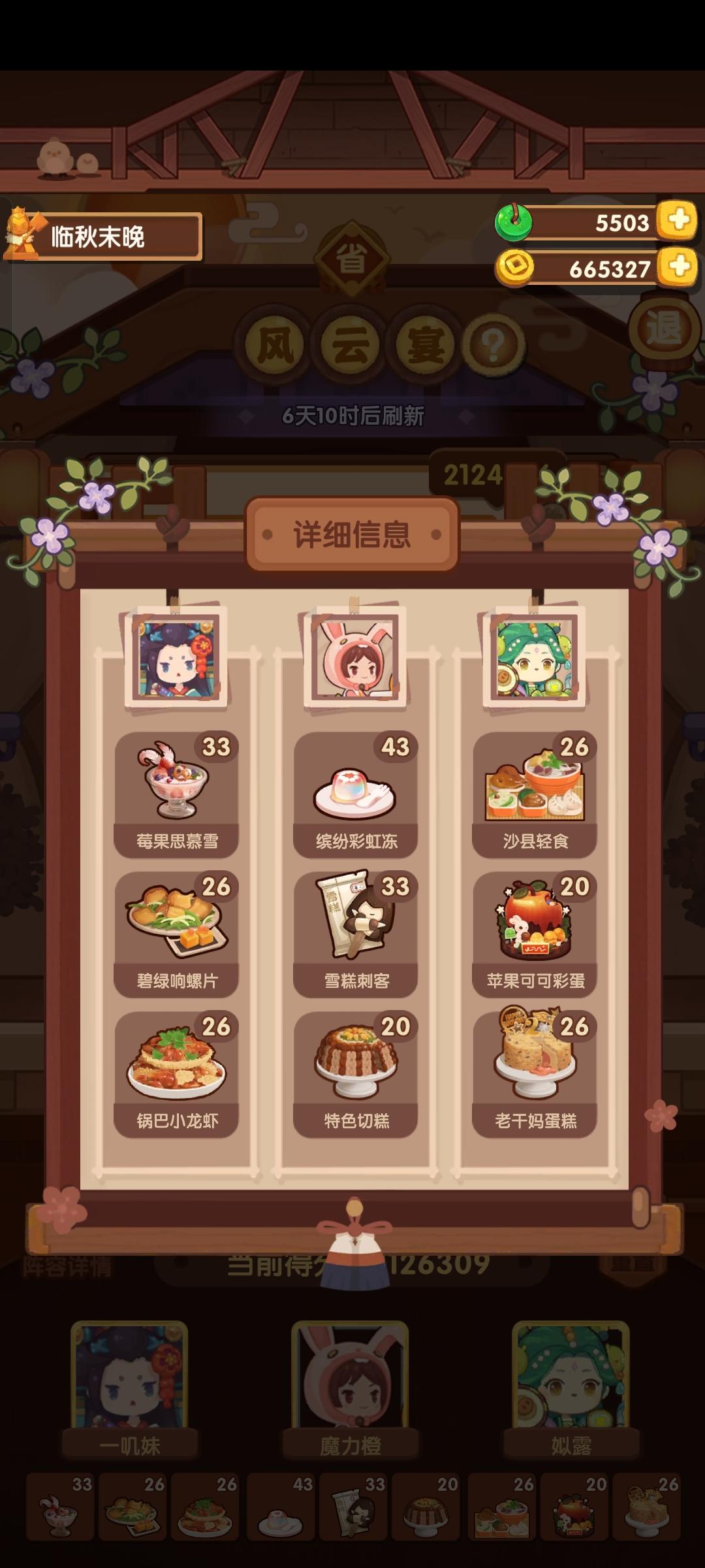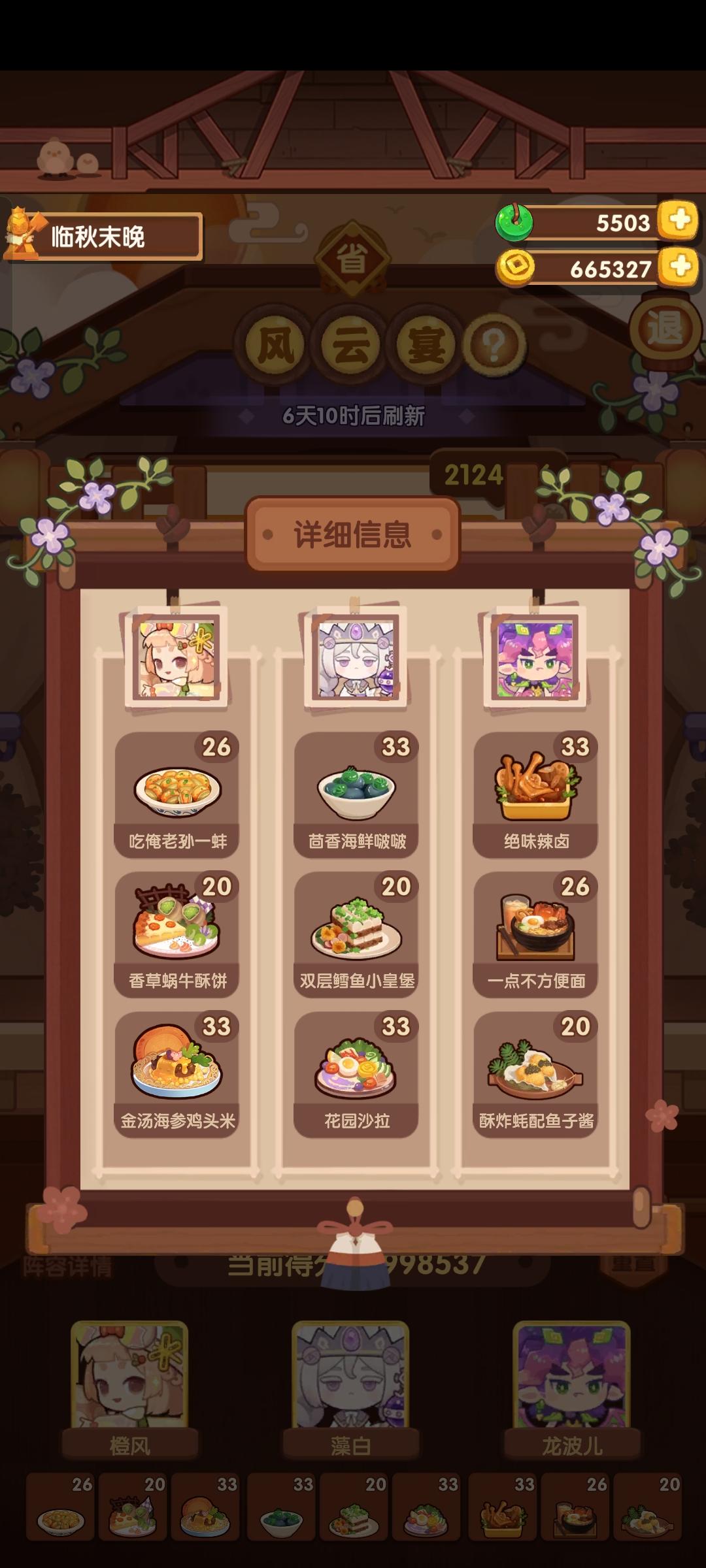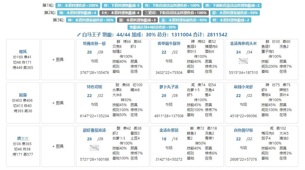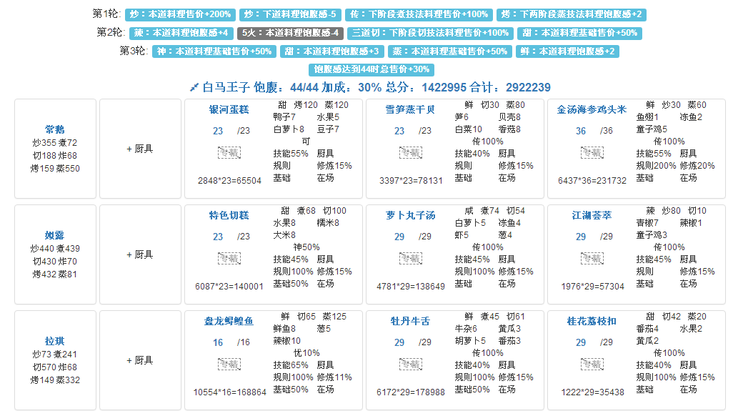 前排提醒🧱①新池太给力了,喵喵大概是能到五档的。②注意拉琪(已修),乐乐妹没修(修了+4万左右)蒜蓉龙虾上位>烛光晚餐,灵芝空间,没有的话可以用咖喱香辣虾,优待战俘代替BBQ没有可用凯蒂猫鳗鱼烩饭,冬阴功汤代替香草蜗牛上位>银河蛋糕雪糕刺客上位>生蚝盛和响螺片上位>牡丹牛舌