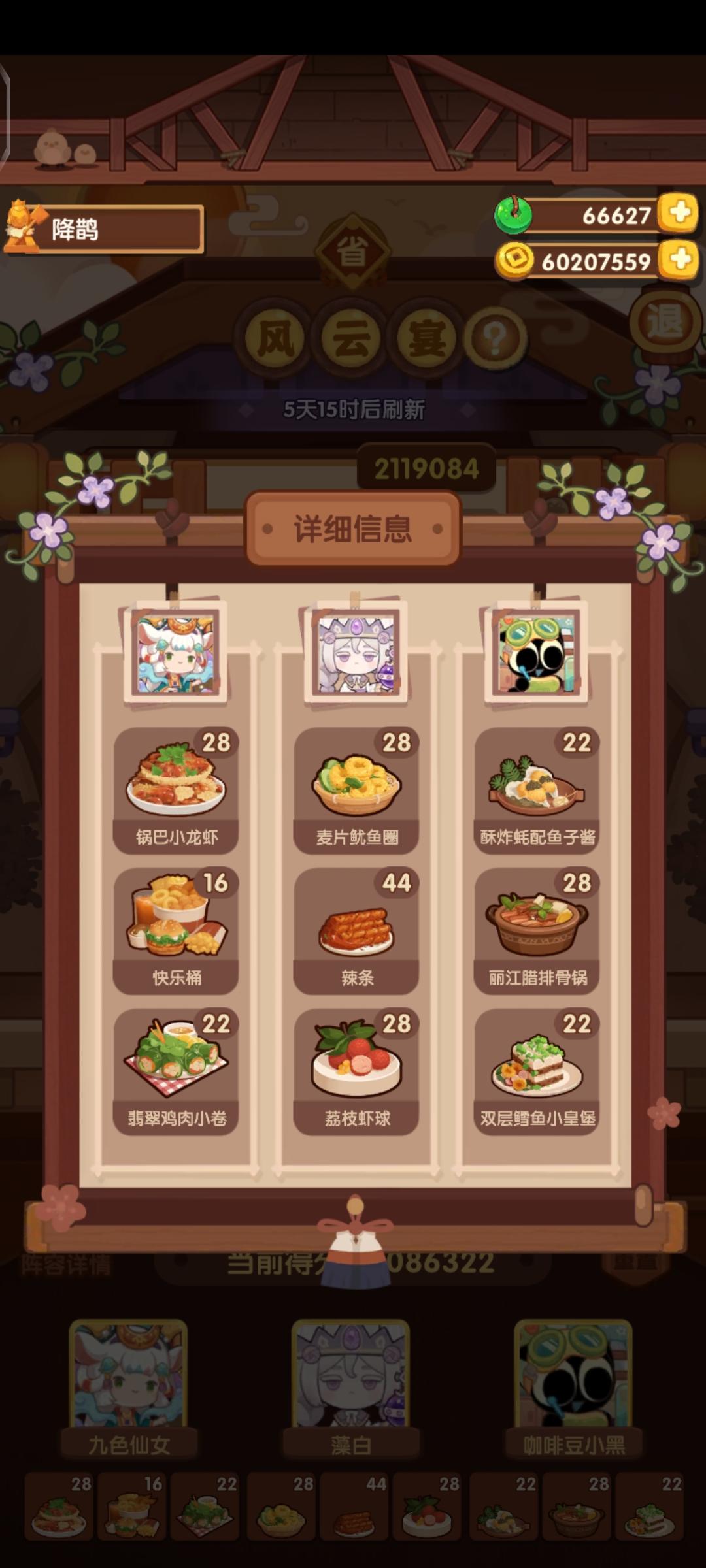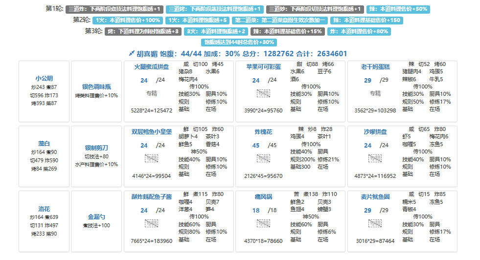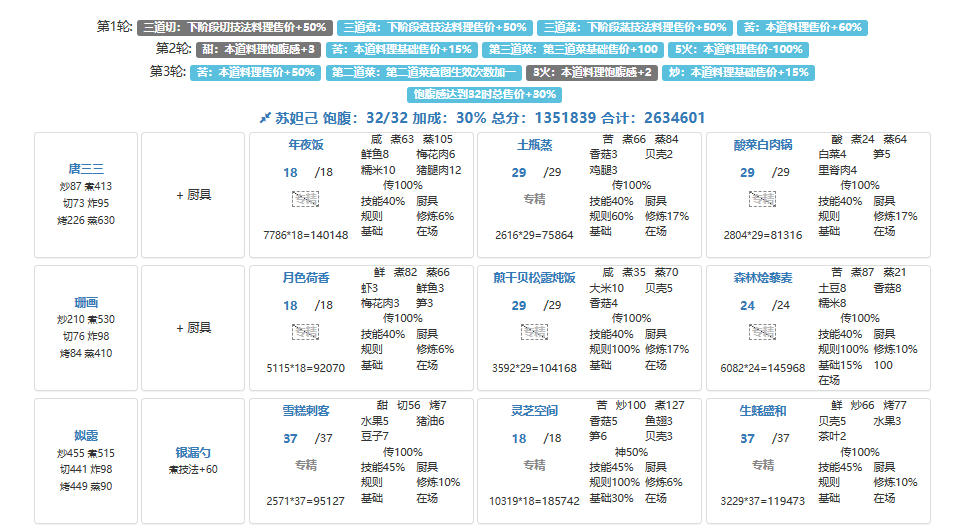 国际惯例……哦不,这次可能不能国际惯例了,但一如既往地是修炼偏高,具体数值在P3。本次作业参考论坛用户长夜梦旅有时尽的291w作业,再进行些微的修改,原帖:【https://www.taptap.cn/moment/461868531697323162】洛花、句茫、唐三三有修炼,三人少一个都不行,小公明有修炼但不影响最终结果。修炼不足的话会无法到达满档线。全菜谱无专精的情况下总分无法到达满