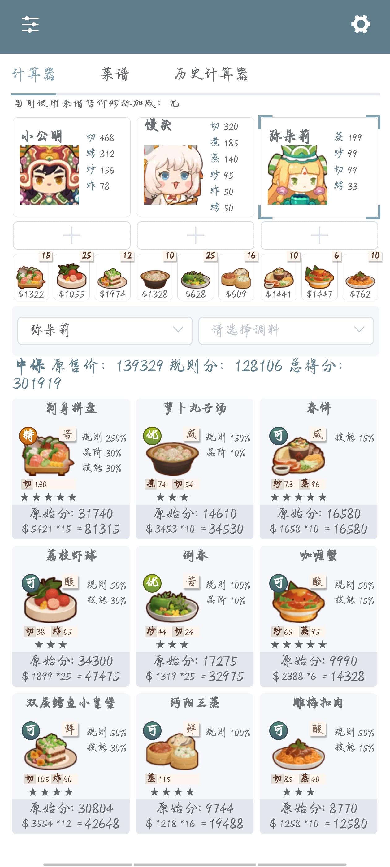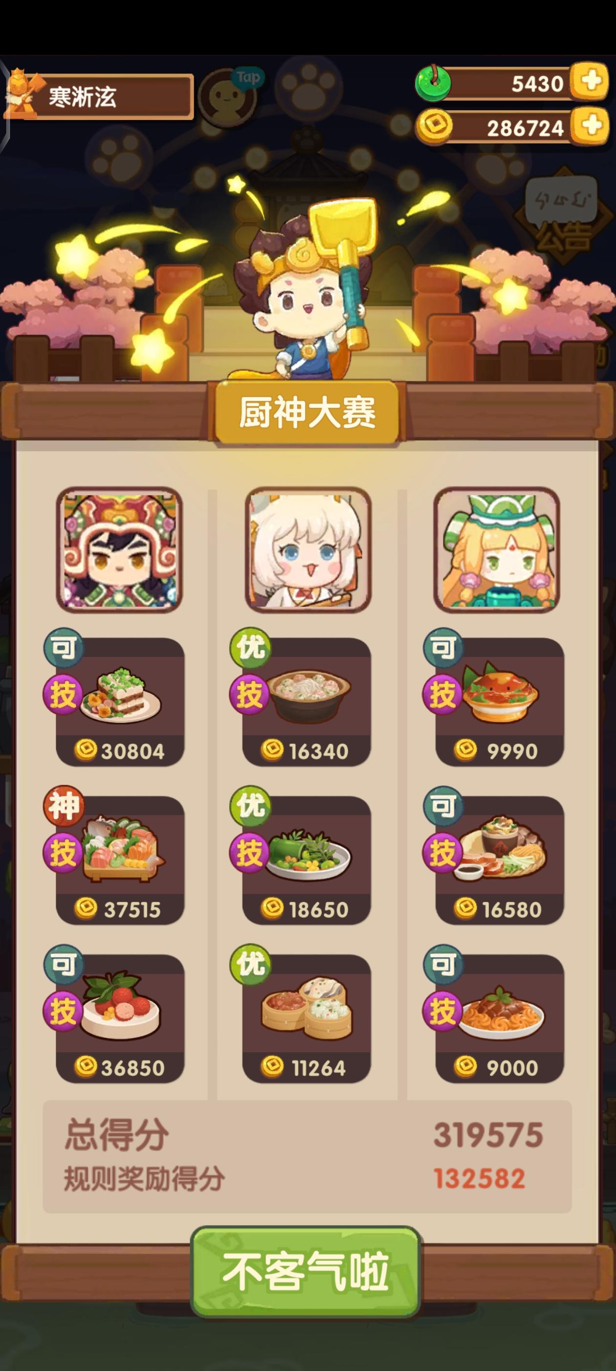 没厨具也没啥氪金厨师和菜谱的,这次太难了,金币报名都用完了。。。被迫学会了使用计算器,计算器跑分和实际分数,中保了,我尽力了