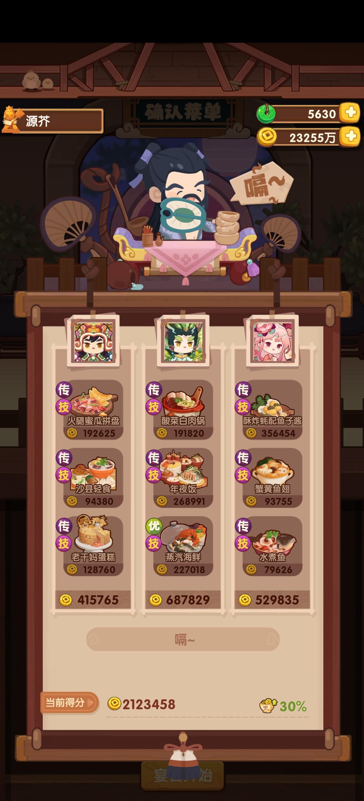 无氪,后厨有个年夜饭,擦线过有厨具:藻白,宋书汐汐,橙风都带了+对应技能售价+15/20%的的厨具几个菜熟练度上来可能能省掉厨具。