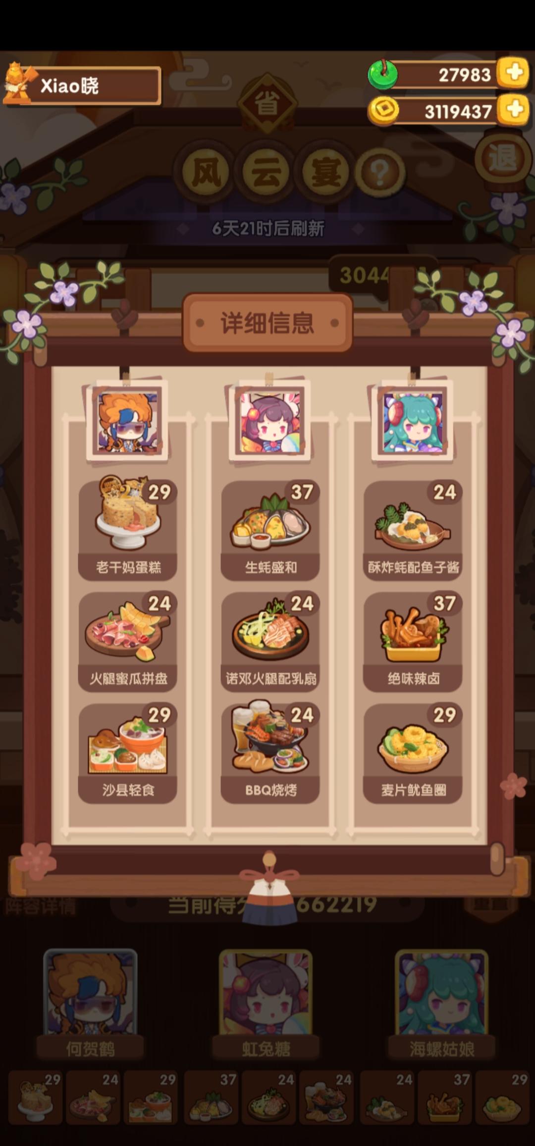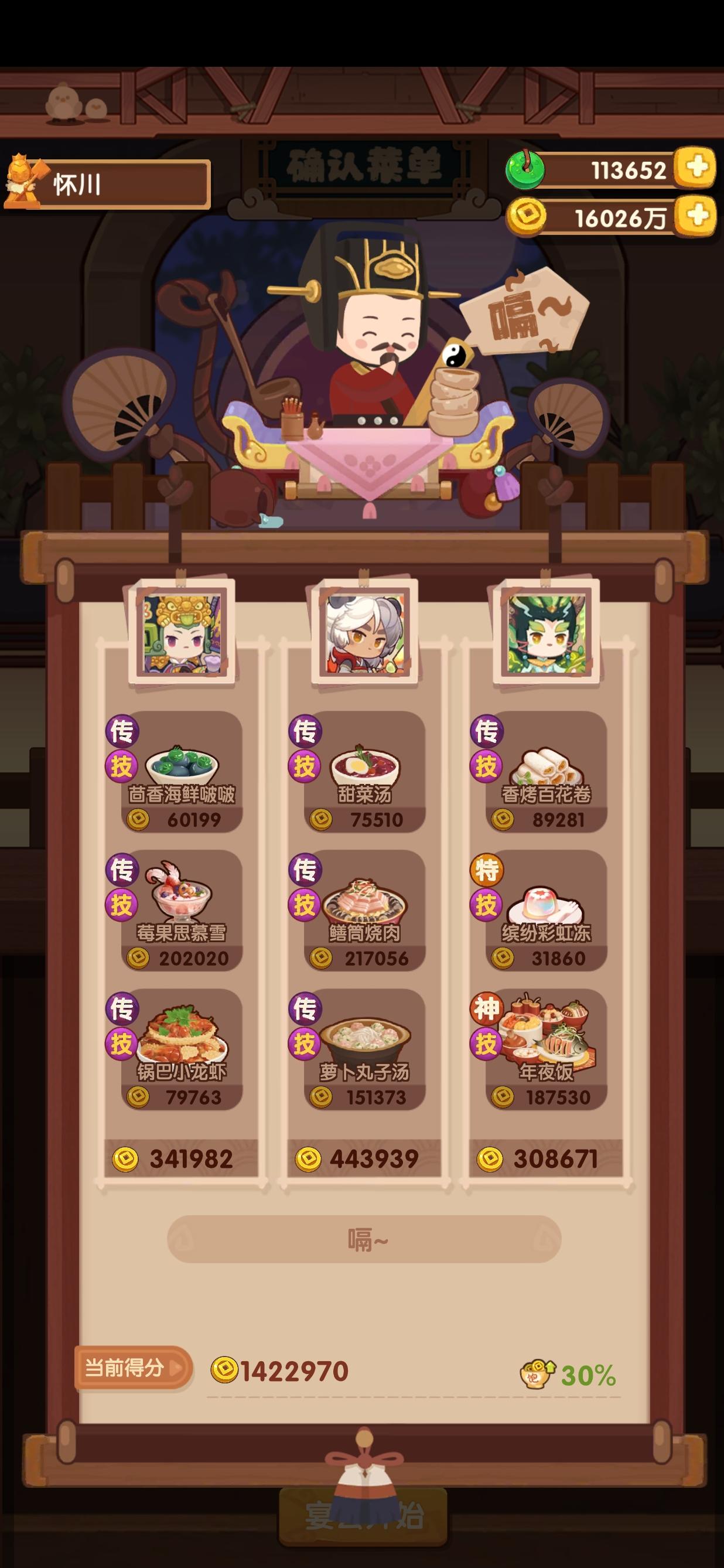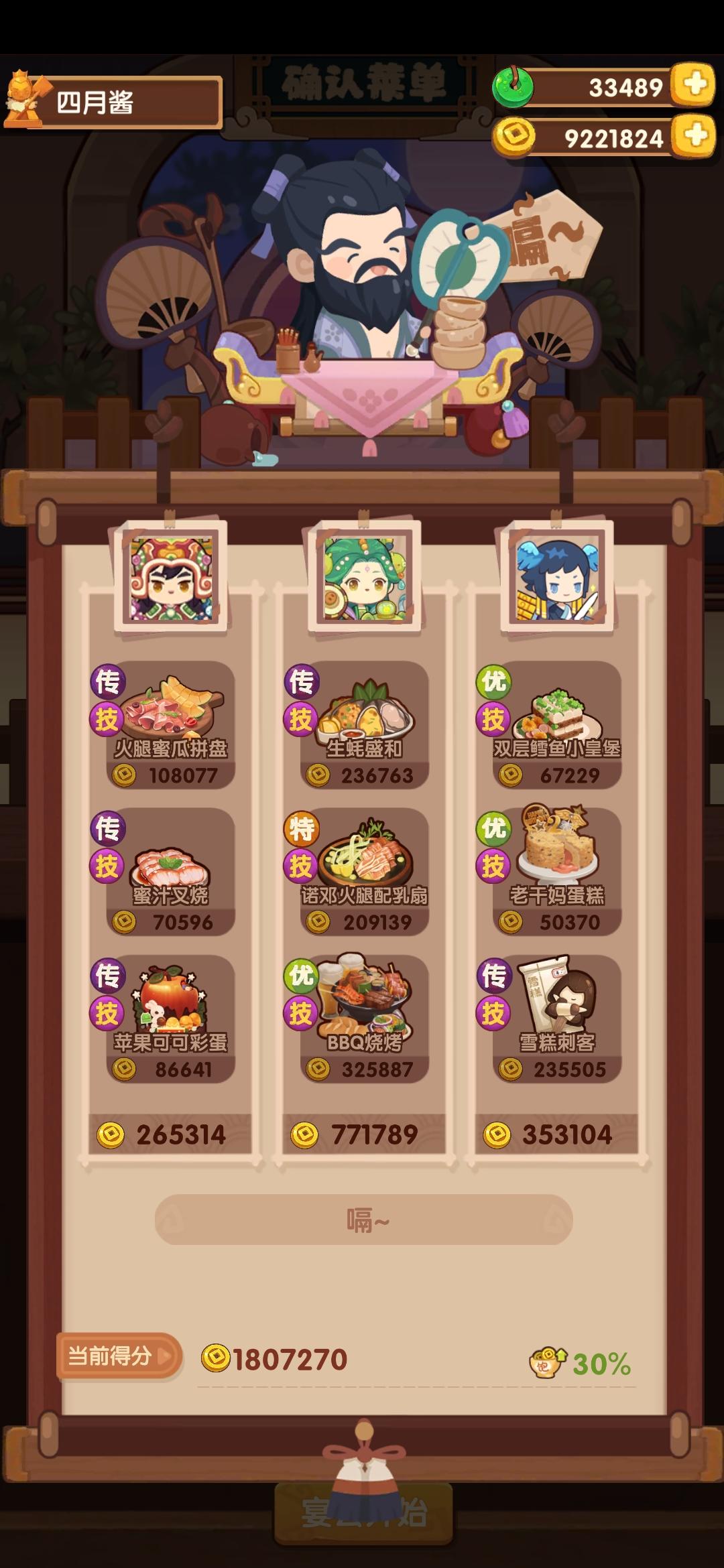 这次宴会有后厨菜BBQ,其他都是普遍有的菜,没有的话换个别的影响也不大,有一点点容错率(毕竟我没有生蚝仙丹年夜饭那些),如果有以上的大热门菜品,过线非常稳,依旧是小公明有躺平鸭杯,其他有的厨子可能有一二星的售价厨具。