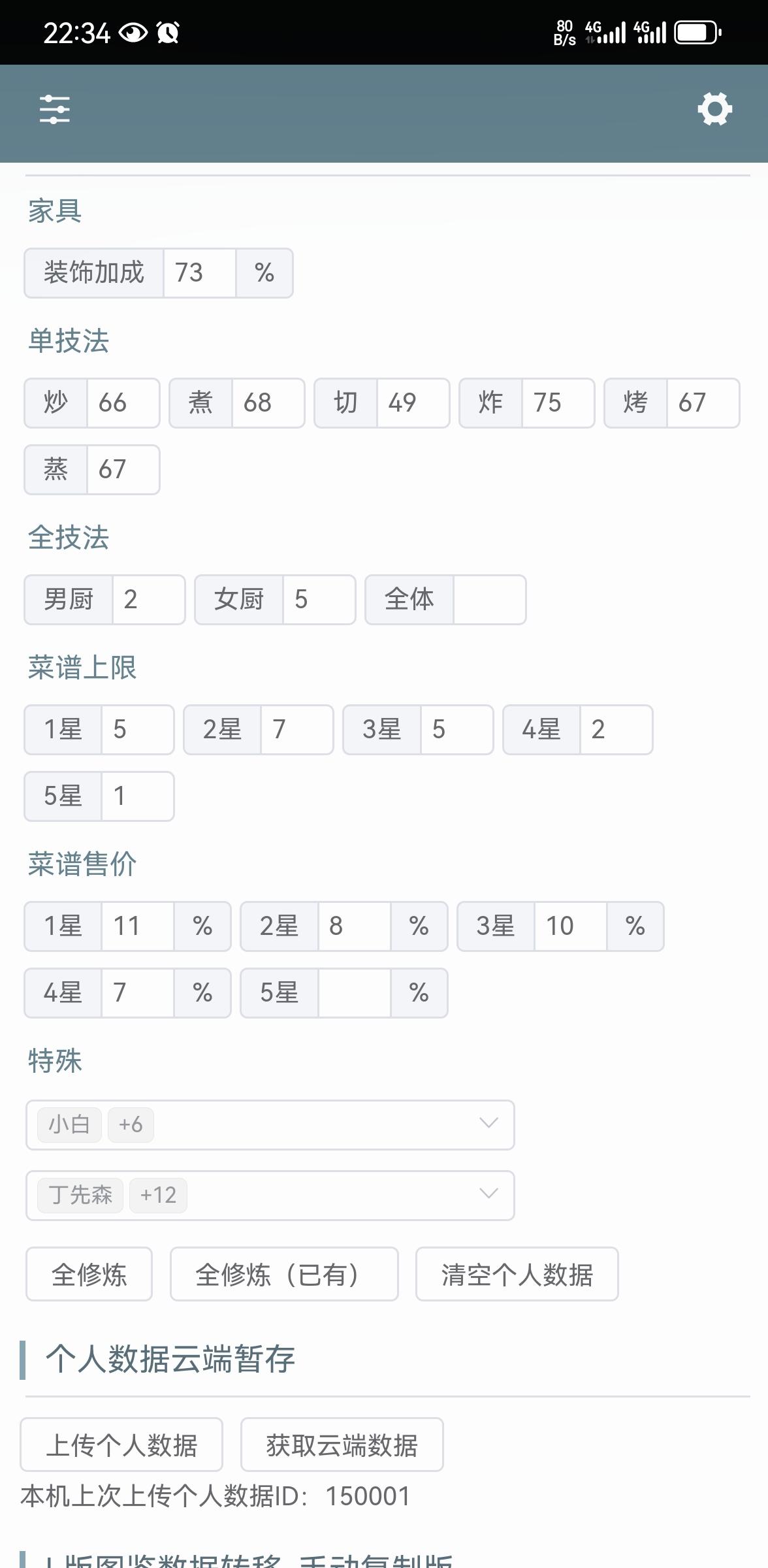 全员无厨具,修炼偏高,具体数值在P3句茫有修炼,小公明有修炼但不影响第三棒结果。没有年夜饭的可考虑拿其他五火蒸菜谱当替代品,因每个人的修炼进度不同的缘故,修炼不足的可能会因此导致无法拿到满档奖励,需要换的请务必先去计算器内查看后再进行修改。无专精的情况下总分3236868。