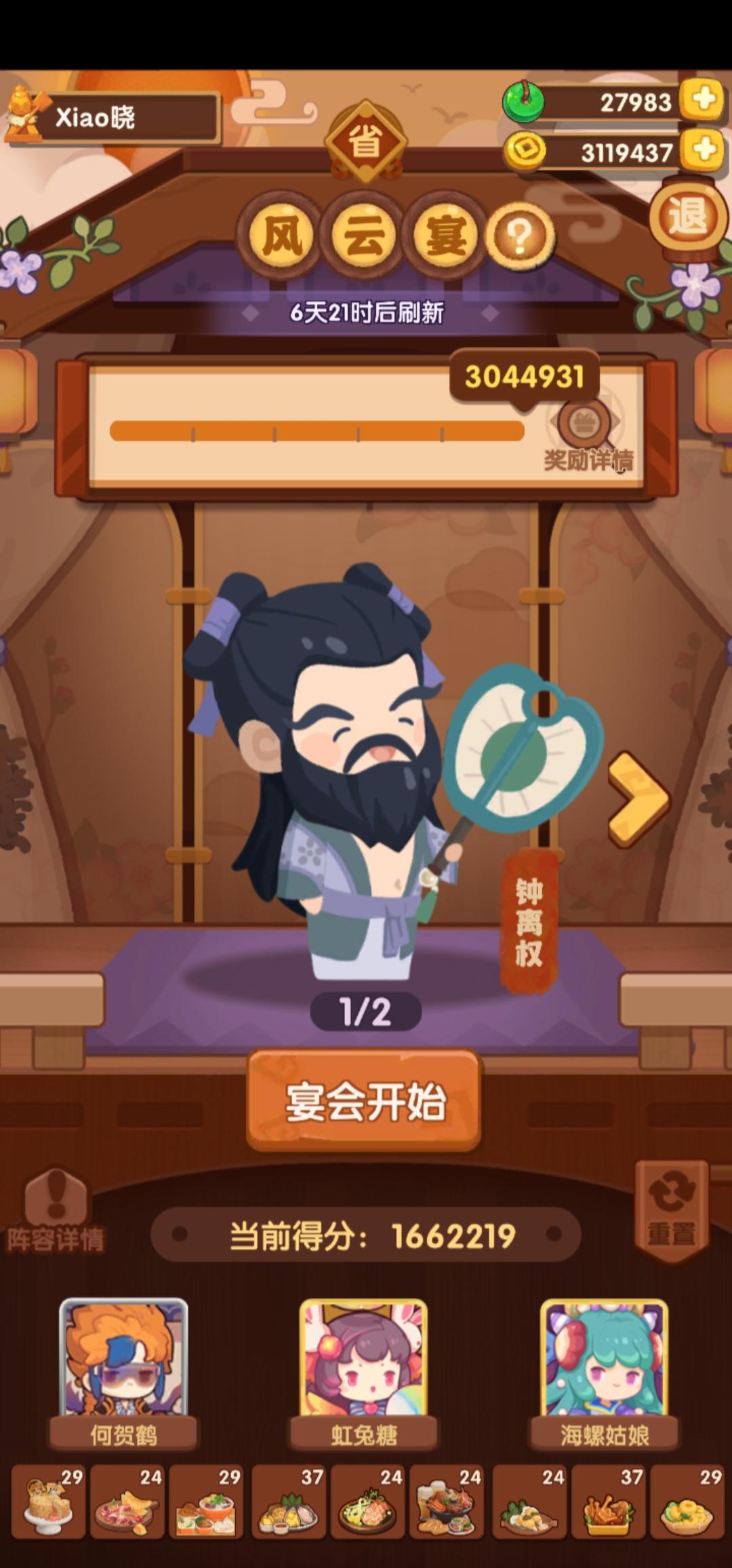 修炼比较少,全靠厨具捞)总之就是一个没有金符文的穷掌柜勉强过线的宴会记录~已修炼:姒露,洛花,汤圆厨具:橙风-无, 洛花-霞姬霸捣药罐, 琪拉-红木蒸饭桶, 姒露-金斩骨刀, 无寄-躺平鸭杯, 汤圆-幸福礼花炮(碎碎念:如果这个帖子能帮到你就太好啦!我一开始用计算器跑分达不到最高档,很丧,但尝试之下还是成功了~所以大家不要放弃,多多尝试,都有希望!最后,如果你看到这里了,就祝你奖励全收,欧气