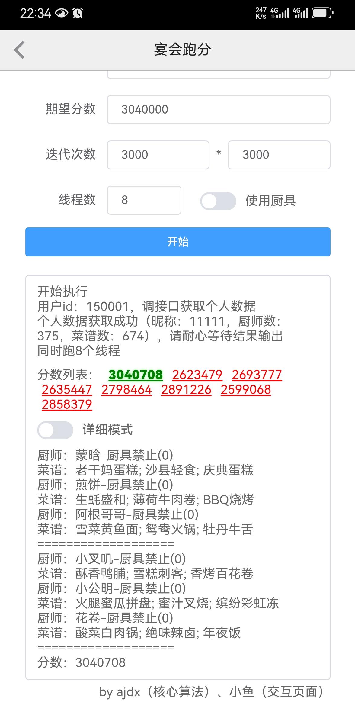 bcjh跑分微调了一下就压线过了,懒得再调,技法厨具是之前修炼带的