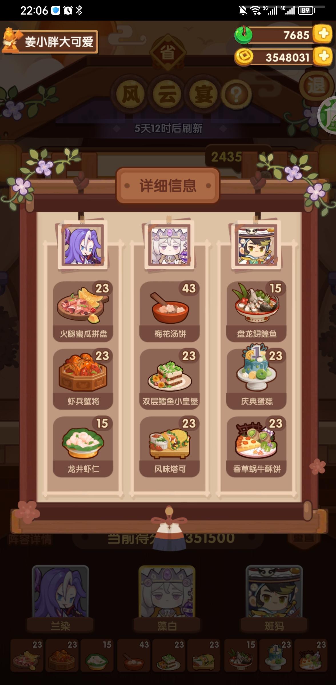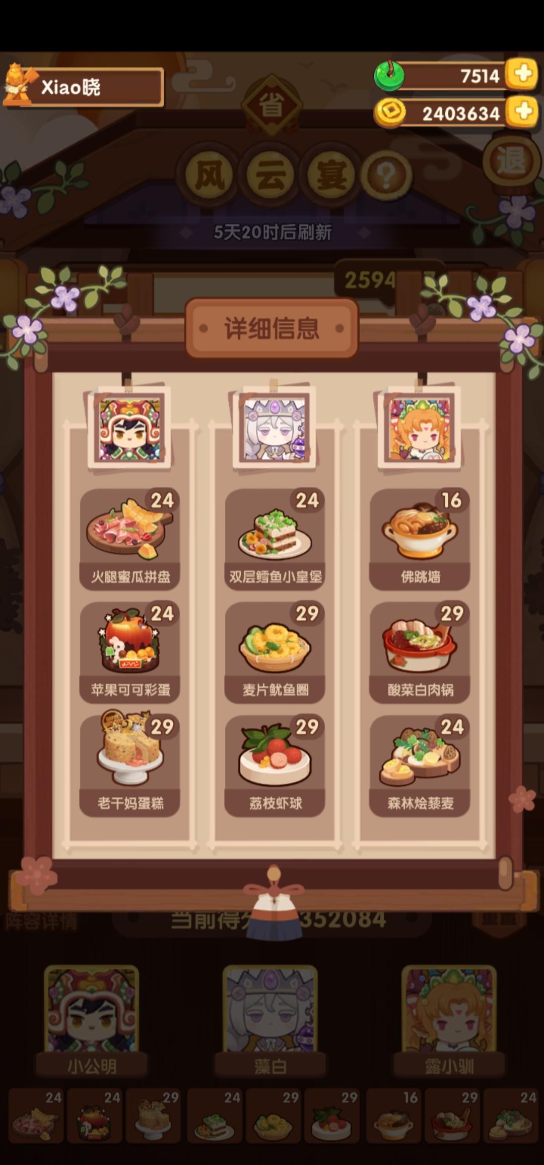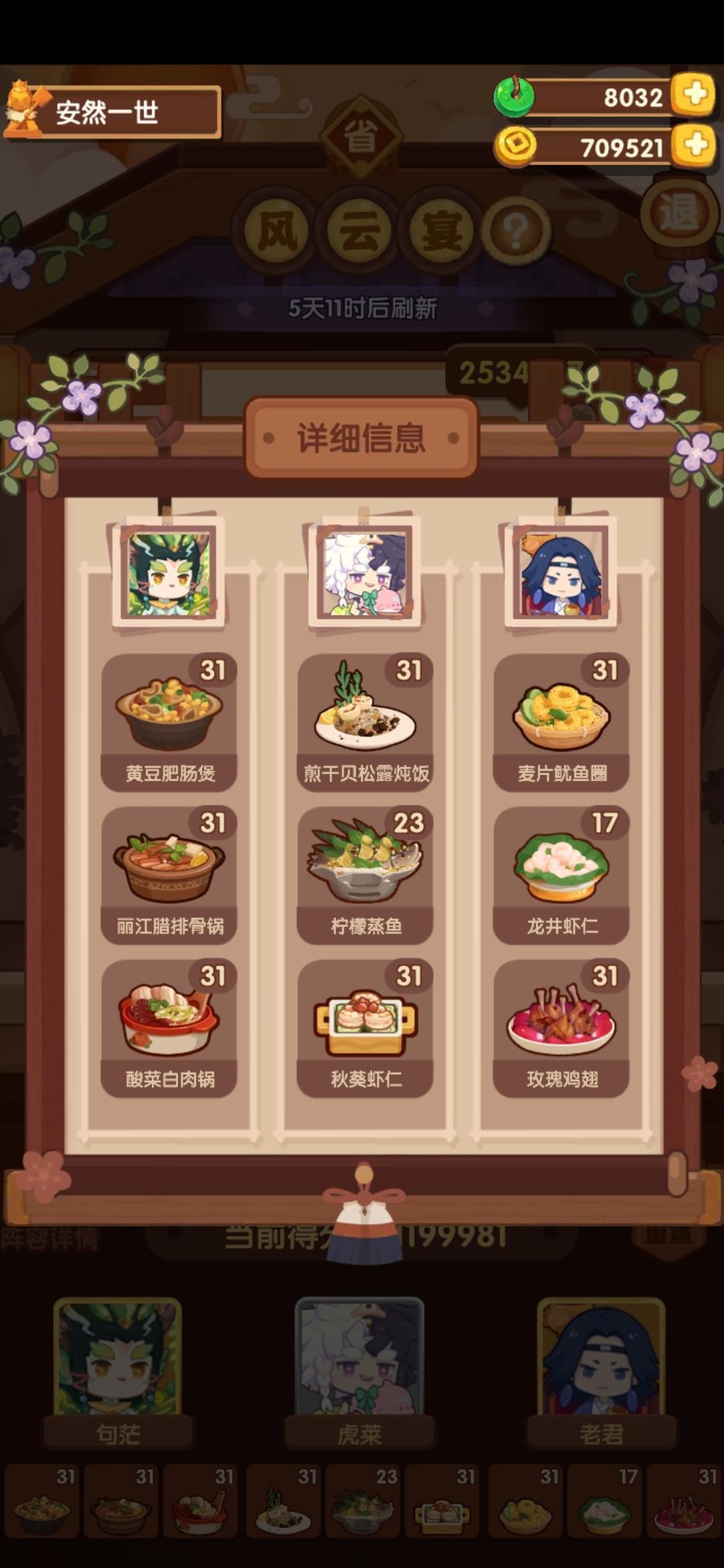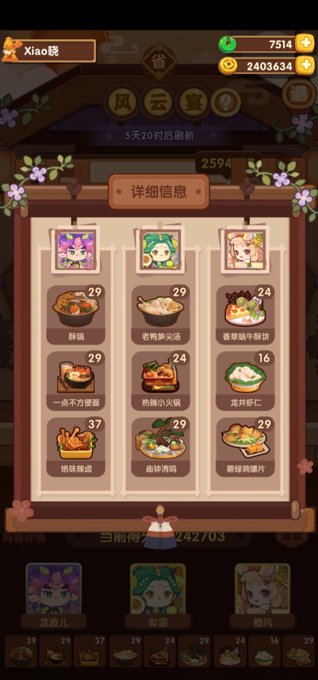 前排提醒①本次宴会较简单,江山萌新及之前应该是稳过五档的。②喵喵萌新可 随便 用P1-2方案,江山萌新可 尝试 用P3-4方案,(失策)P3萝卜可以换沙县或老鸭,但是得多靠其他方面补点分,比如达浪用一无锁有加双层鳕鱼专精就能过线③菜谱,厨师,厨具,专精有限,大伙可以到图鉴网自行调换更合适的。