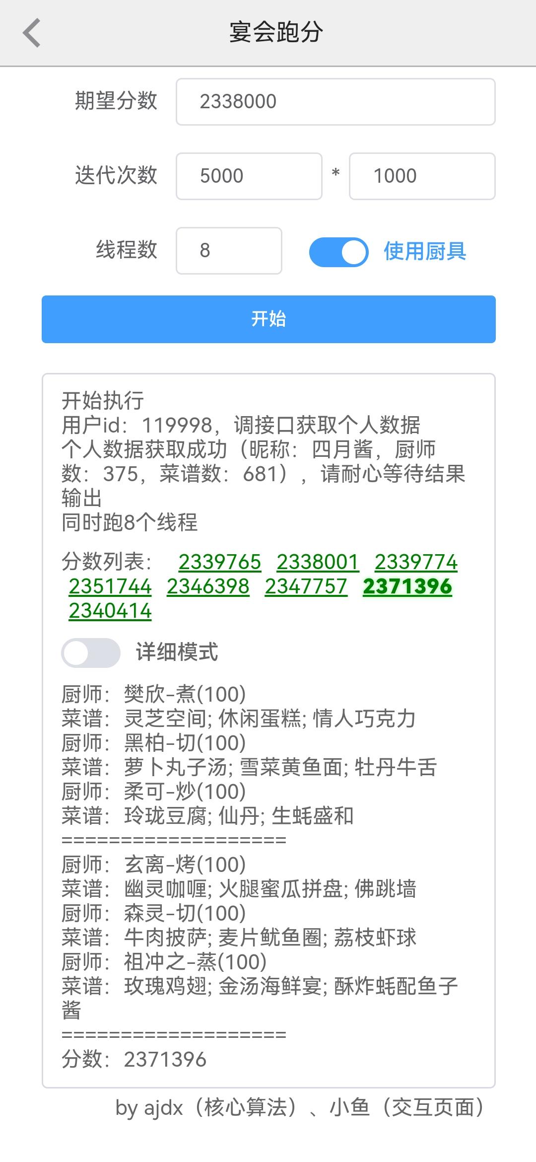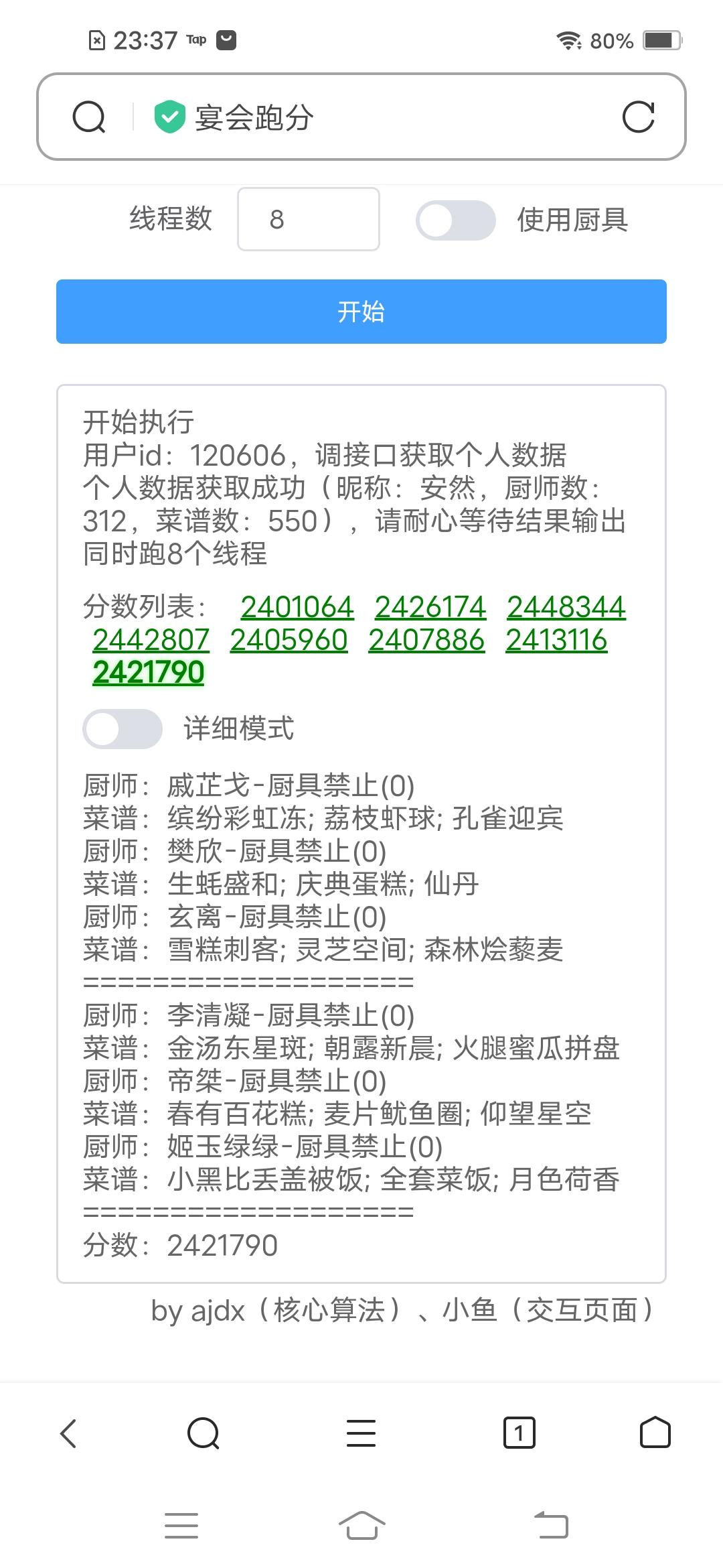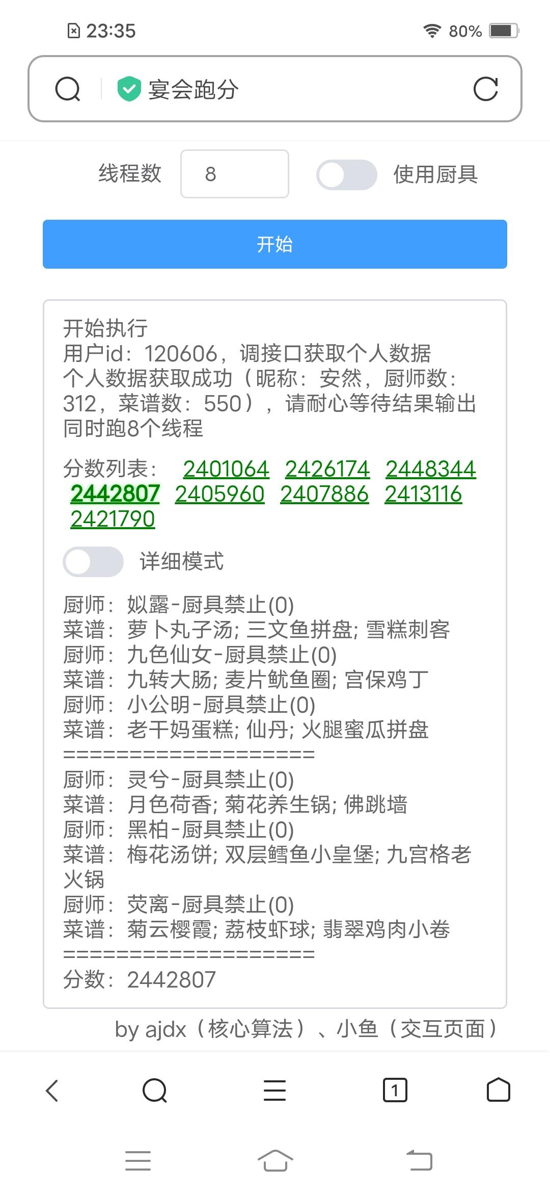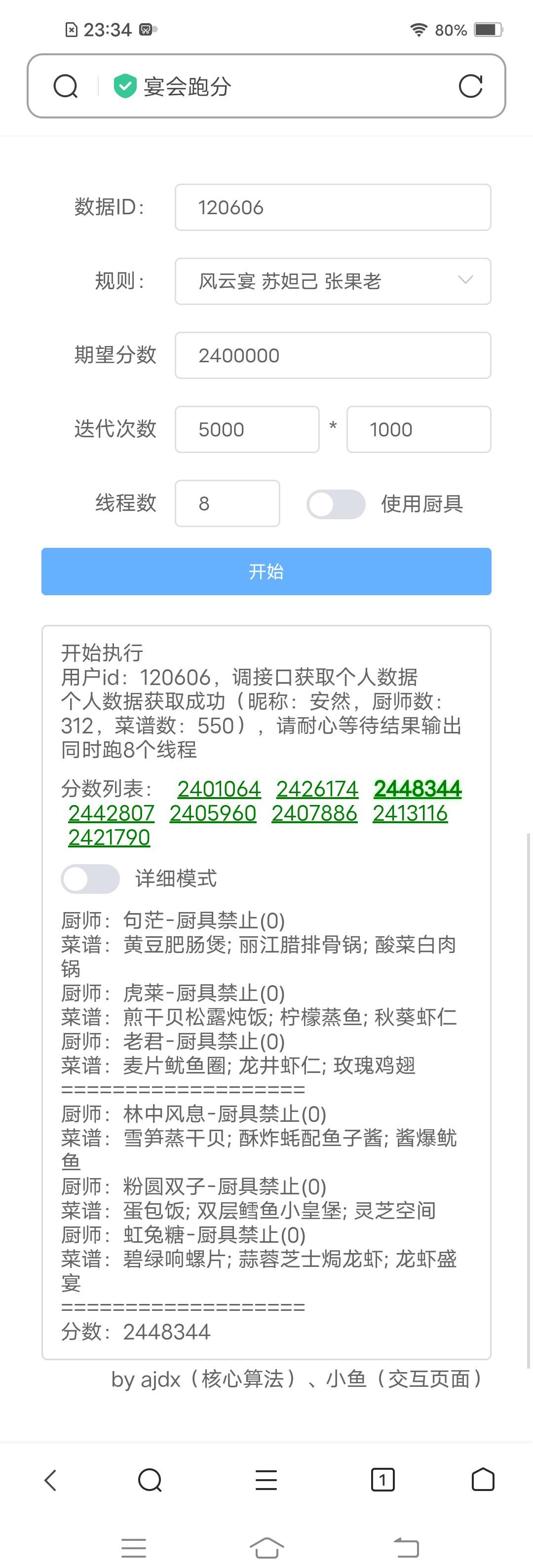 宴会计算器!手机版计算器出来了真的太舒服了!用的不加厨具的选项,只要三阶都能上240w,真好希望能帮助到大家!啾咪