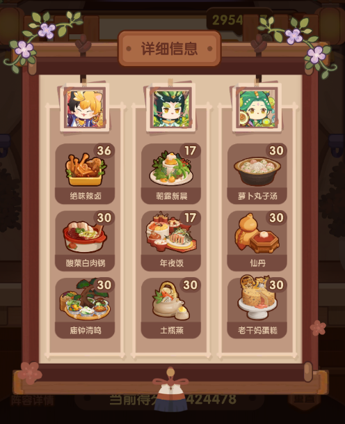 💮100%不用牛乳、咖喱、鱼翅、螃蟹、鲜鱼、笋,无厨具,有些菜只需1份。💮真心感谢计算器大佬们,萌新这周继续轻松卡位拿580玉。