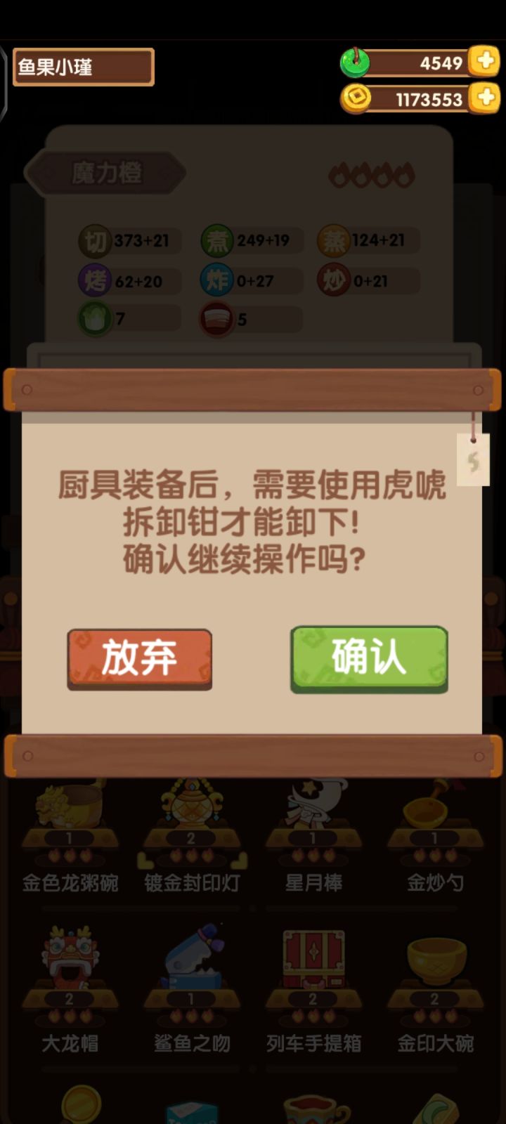 这个说明太引起歧义了,一直以为拆厨具必须使用老虎钳🤣,但是得到老虎钳比厨具难太多,数量完全不匹配,就不敢随便选厨具。当时也有点疑惑,觉得这么人性化的游戏这方面不应该这样吧,但也没想太多。就这样玩了300天+了直到前两天看其他攻略贴下的评论才知道可以直接换另一个厨具装