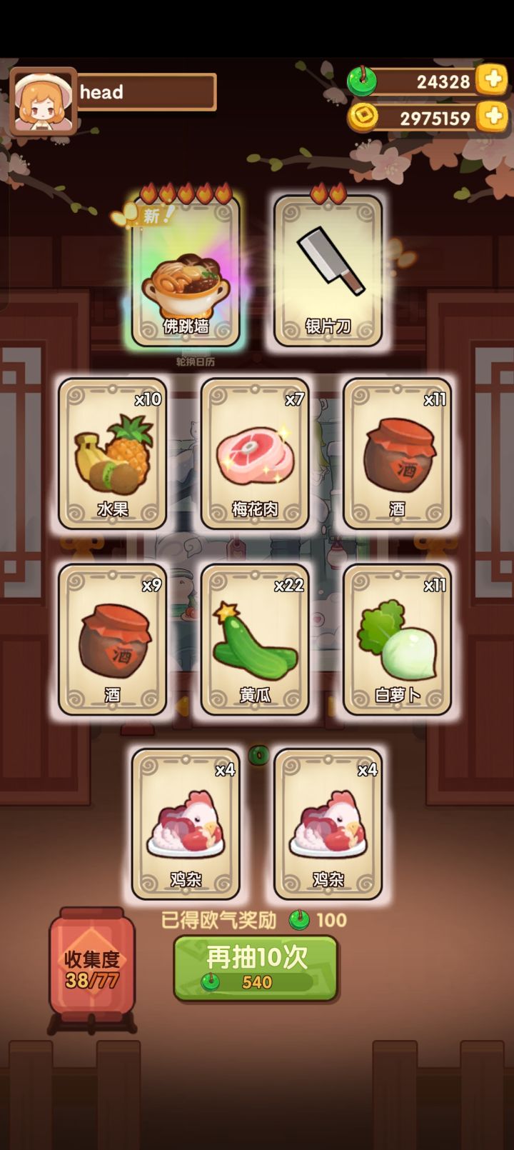 53抽菜厨齐。74抽除坑齐。小红帽值得抽吗?坑在哪?用了87574-61702=25872玉。