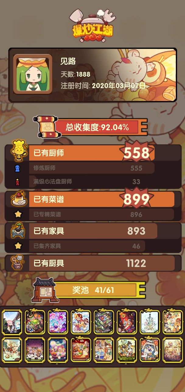 一发入魂五星厨师不过前几天抽裘小白现在没钱了,目测要80+发,顺便庆祝一下几天前我的五周年