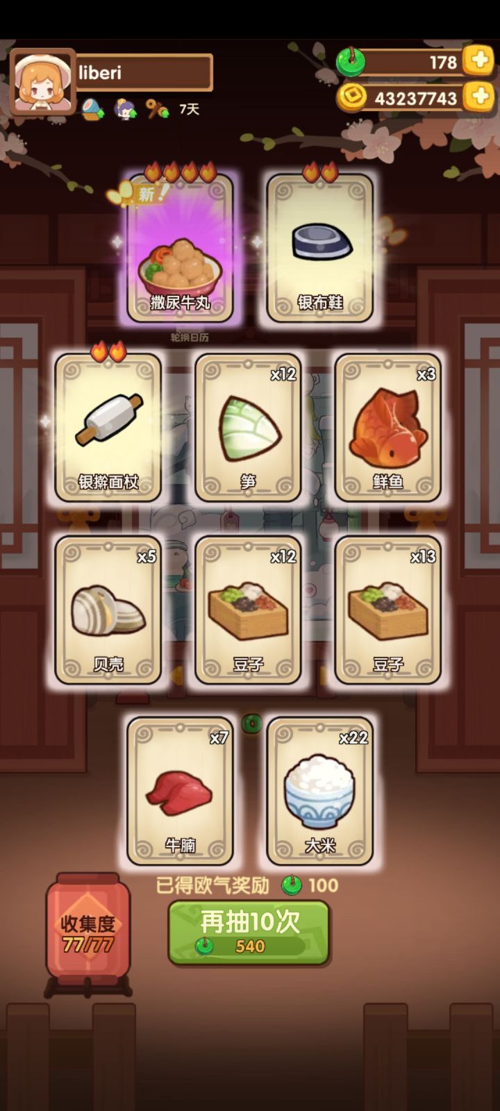 终于把璧池抽齐了,最后一个金油灯也不记得多少抽了,想起来就来上十连