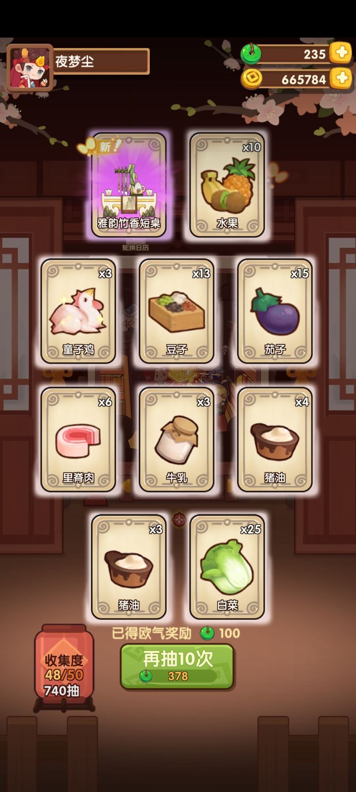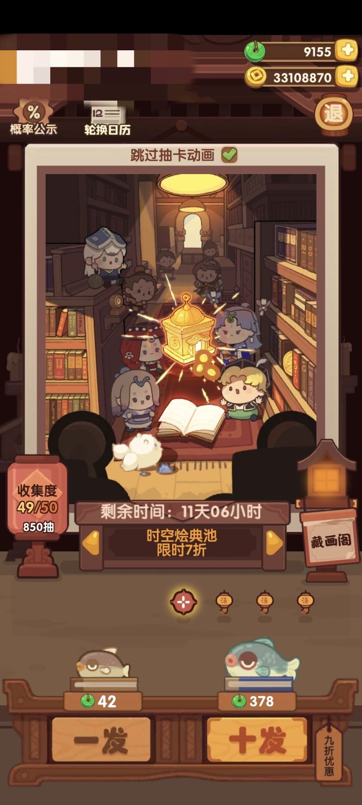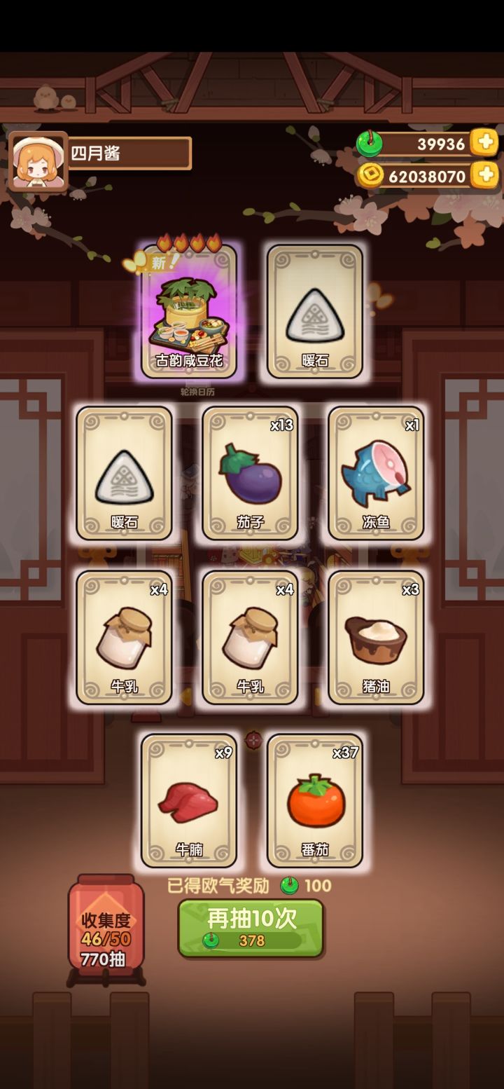 时空绘典池74抽除坑,就差罗山伯了。这套家具还蛮好看的