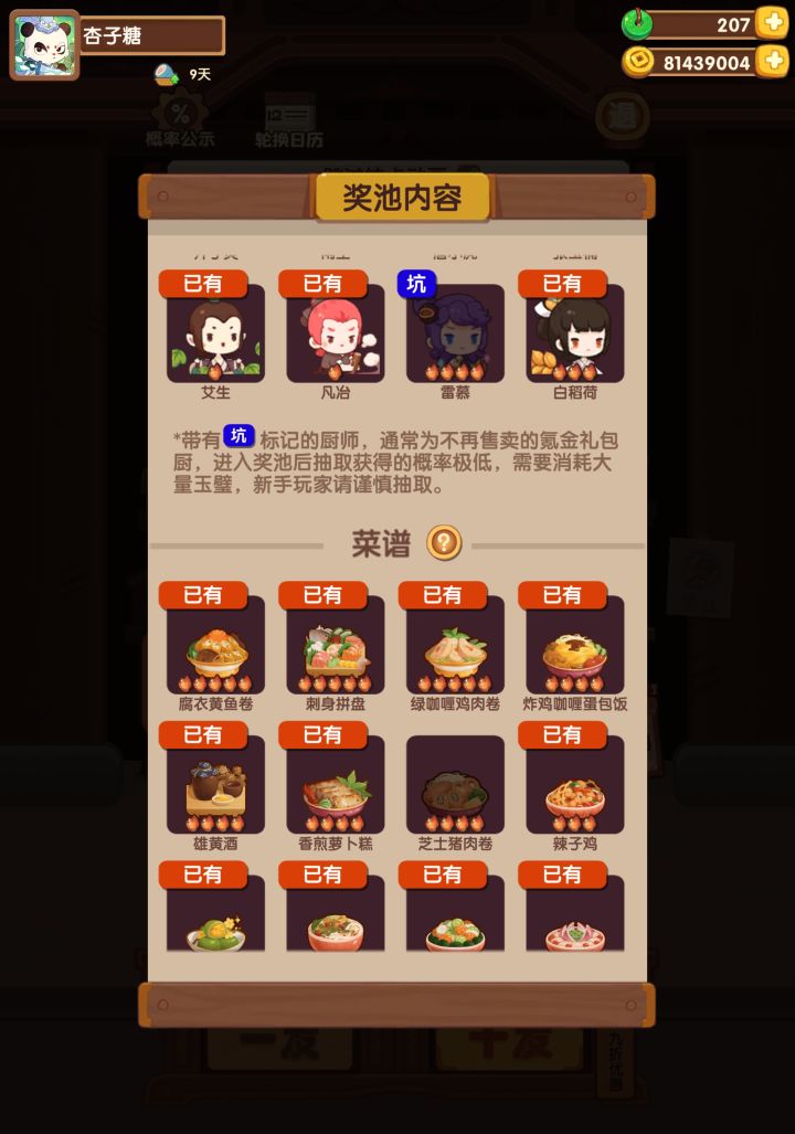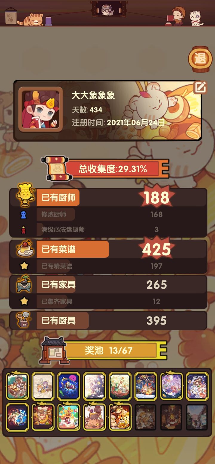 故城荣光入坑,在琉光之森后一次复刻,去搏顺德鱼生上头了,心态崩了弃坑的食战三国回的坑,“时光鸡”“琉璃市场”“贤客楼”“风云宴”“江湖贴”“遗玉”各种懵逼,再加上食战三国那个挂机游戏,更加懵逼这个游戏到底怎么了正好赶上了最强单日桌的食战三国,就开始接着苟。不玩小破炒的时候,总在tap下各种游戏,基本上玩不到两三天就删,逼氪,换皮游戏,一直找不到玩你游的那种感觉。