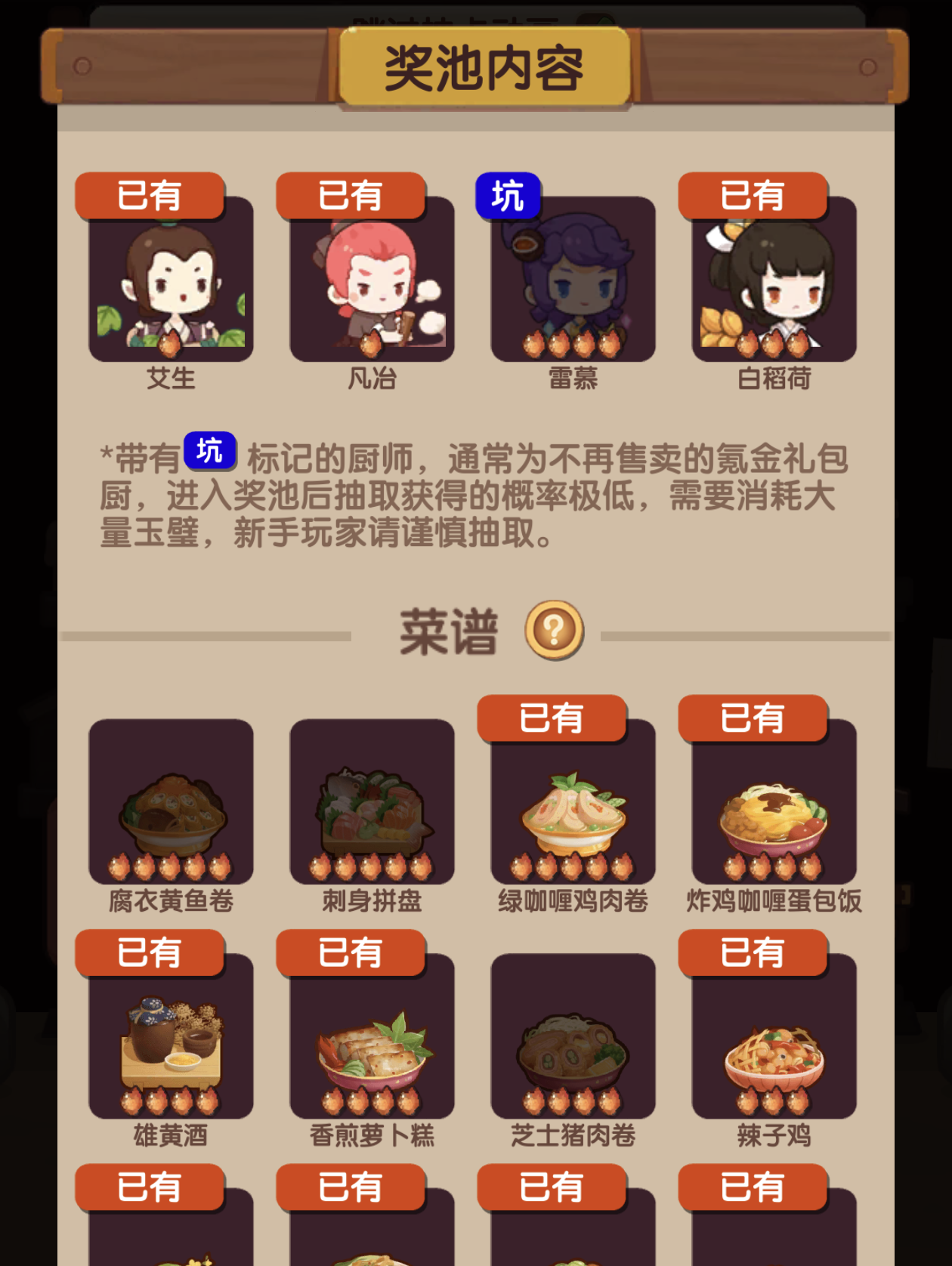 终于抽到雄黄酒了,最后一个后厨菜,都不知道还有多少才能把菜谱抽完,不愿再碰端午池