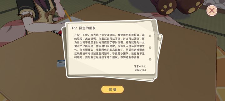 我想说那我想说的内容都在那个图片里面,都已经写的很清楚了,在图一,因为是这样子的,由于是我这个语言哈,关于跟别人不是特别的了解,就是说我说的不是国语嘛,对吧,虽然说我是可以说国语了,但是,我比较喜欢讲日,主要是我也不是在搁着**,故意说句我自己很装懂很能懂那一种的,就说实话,我作为一个老二次元的基础什么之类,我都懂,因为五年了嘛,我看番都已经五年了,有些的已经十年了,就是呢,我当时那时候说了一句那