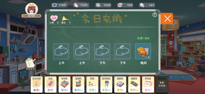 我今天我今天给她安排的,她一个都没有做哦,是又出bug了吗?还是今天是她的休息日呢?还还有一个小小的问题:就是我自己是熬夜型选手,之前他问我几点睡,我也跟他讲3点睡,然后说胡桃会尽力同步我的睡眠时间,那她也3点睡啊,可是他早晨6点多又会出门玩耍,那他这样睡眠时间太短了,会不会有影响啊?什么办法让她早睡一点呢?小建议:玩家们可以监督胡桃去睡觉以及可以增加一个洗衣机,胡桃每天放下来的衣服需要玩家手
