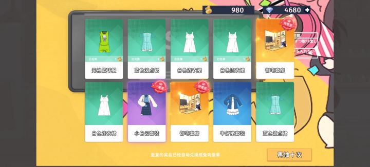 我记得之前就抽到过精灵水手服,今天的金又又重复了