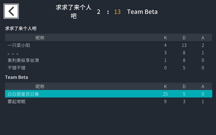 希望后面加入排位(或者其他的限制)和信誉分什么的。玩到一半全退了,突然1V5真的心态爆炸。不过游戏整体来说体验特别好。