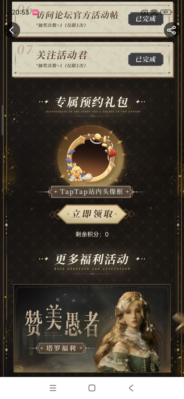为什么预约了没给积分领不了头像框