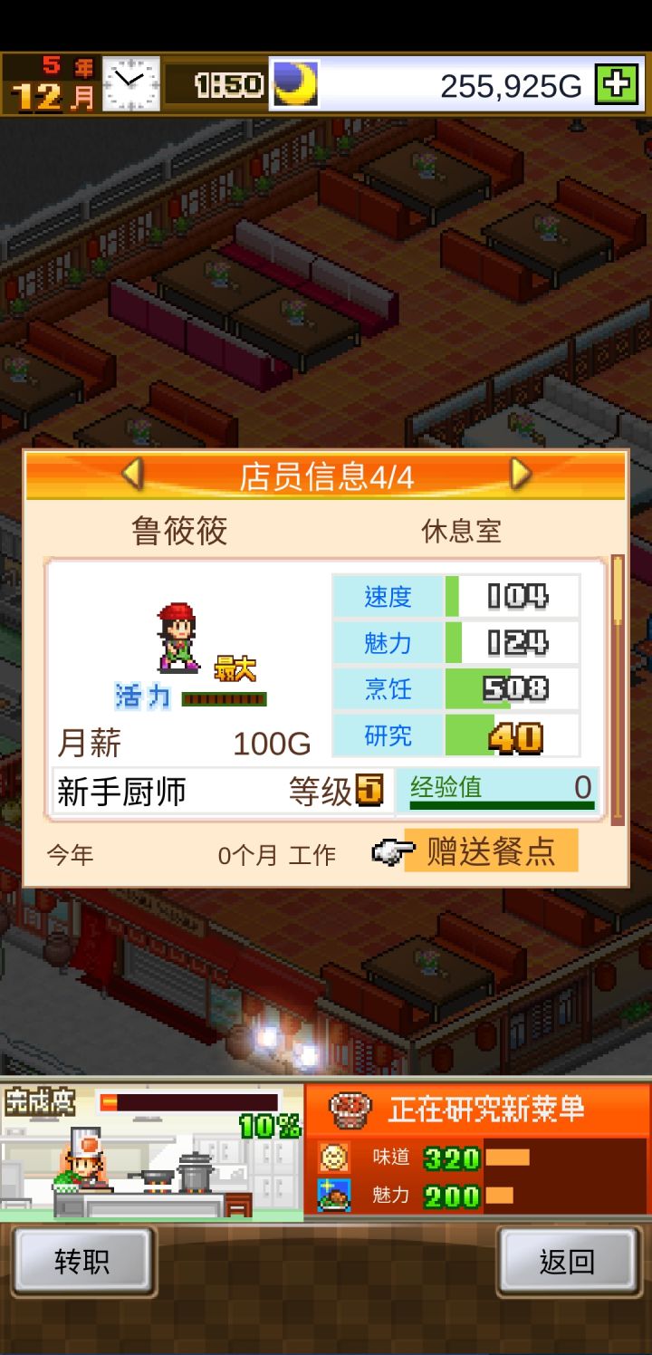 居然还有没汉化的地方(上一次见到是在玩创意蛋糕店的时候),另外,我不是太想招东方虎(主要是真的好贵),可不可以就先养着现在的厨师(目前招的所有人都已经转职了)