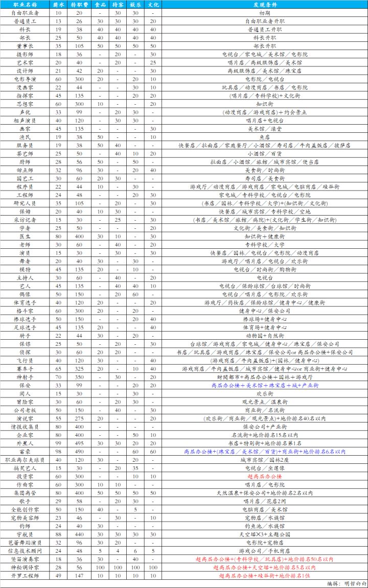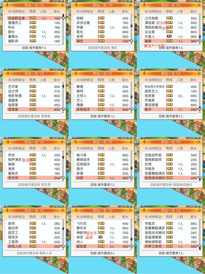 写在前面:可玩性很高,隐藏玩点很多 没攻略很多发现不了 ,网上的许多是老版本 翻译错误 或者本来就不对的比较容易误导 ,顾本贴整合 也做个纪念 要是过几年再玩还要一个个找太辛苦了 包含新手进阶思路,运动会 火箭 特殊居民 事件等上图mark:一 ,共有 69个职业 和32个专业街 居民人数45个(200年出 第45个居民 100年第44个 200年后的没试过 居民20个后大多靠城市规模 和专业