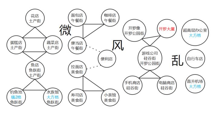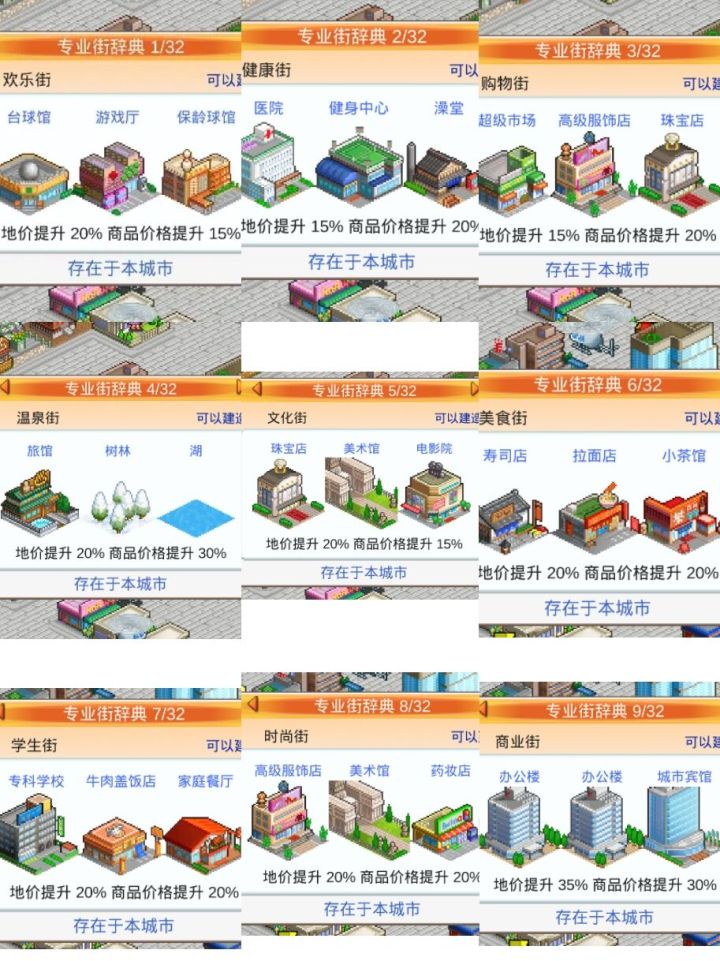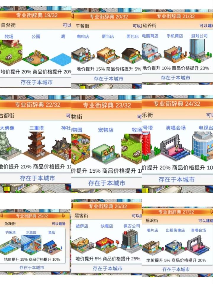 本作虽然是一款较老的游戏,但难度不低。尤其是布局上比较困难。布局要考虑专业街的设置,建筑出现的先后顺序,建筑的大小等诸多因素。为方便布局,这里对专业街信息进行整理。提供两种视图。一种文字版,一种关系图。名称都适用于雷霆国服版。一、文字版二、关系图说明:1、本作相性需3建筑至少一部分在3*3范围内同时存在便可激活,所以关系图中基本都是三角型结构。2、另外根据建筑的出现先后顺序,大致