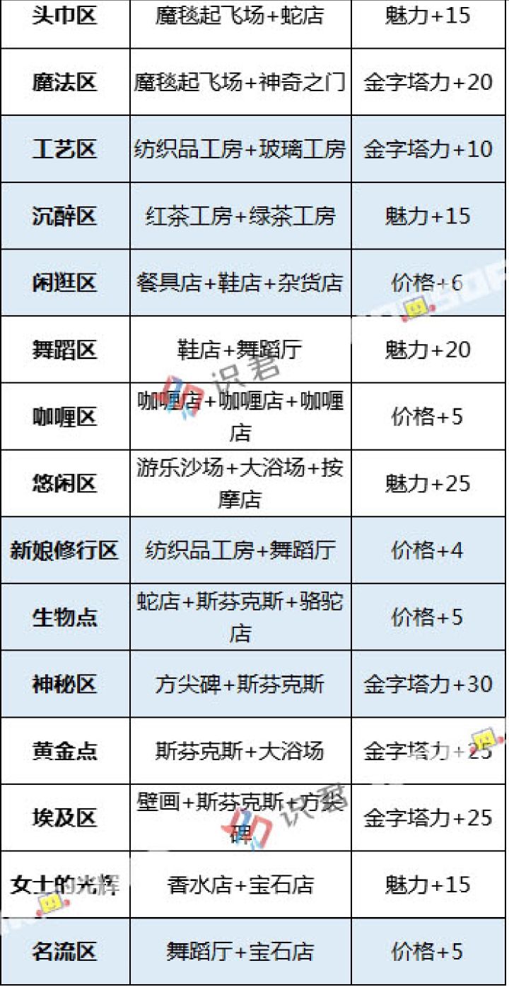 今天整理了攻略自己做了一个表格应该解锁了,所有特殊加强区,遗漏的话欢迎大家讨论图一 是我自己为了区分,每个都用了不同的颜色图二 是游戏内【信息—金字塔—整体地图】的颜色注意竖着两格(或者更多)的建筑附近,要放梯子,不然小人上不去压顶石下面的建筑,要修好之后,才能放置压顶石压顶石为了对称我用了四个大号,两个中号