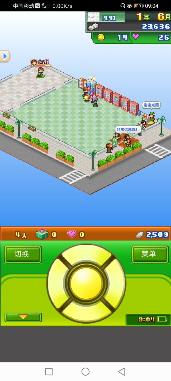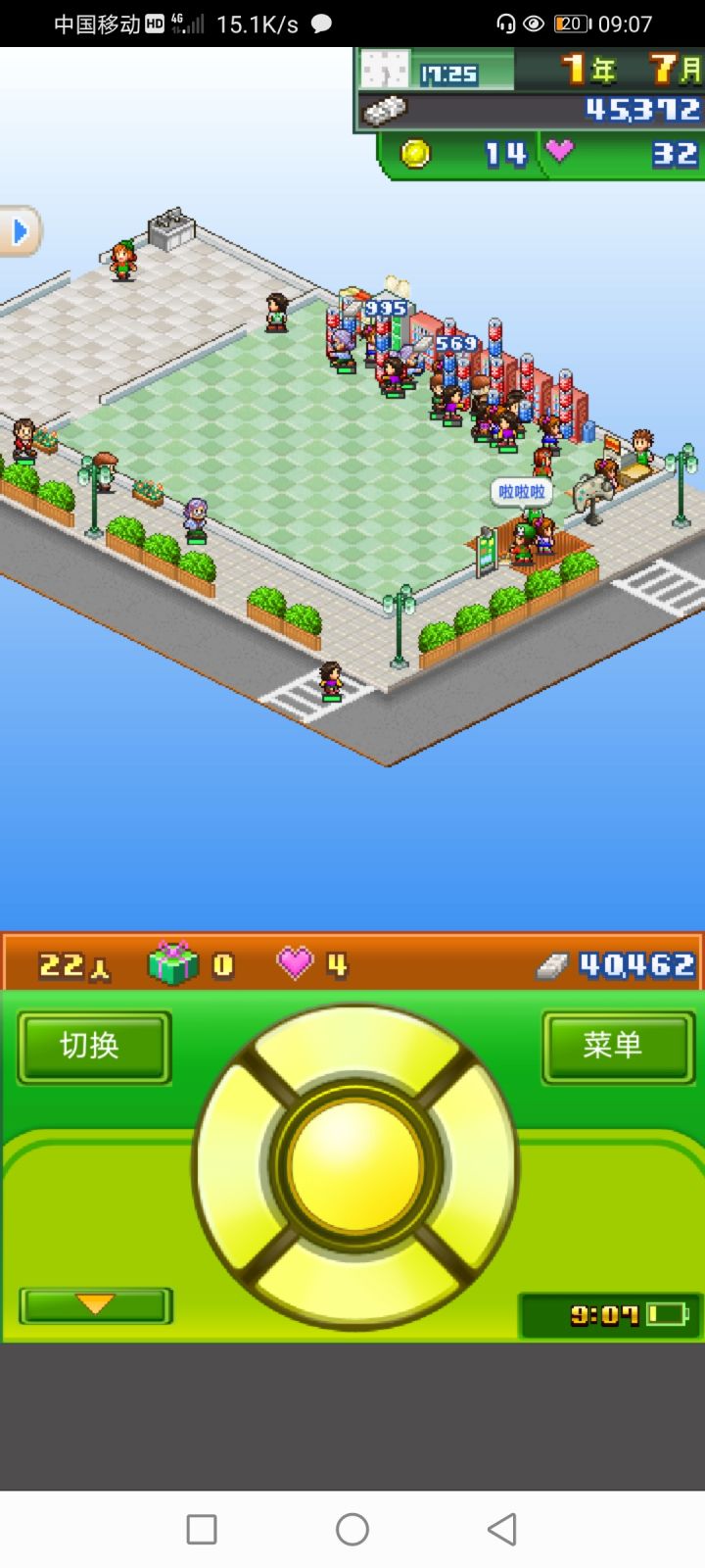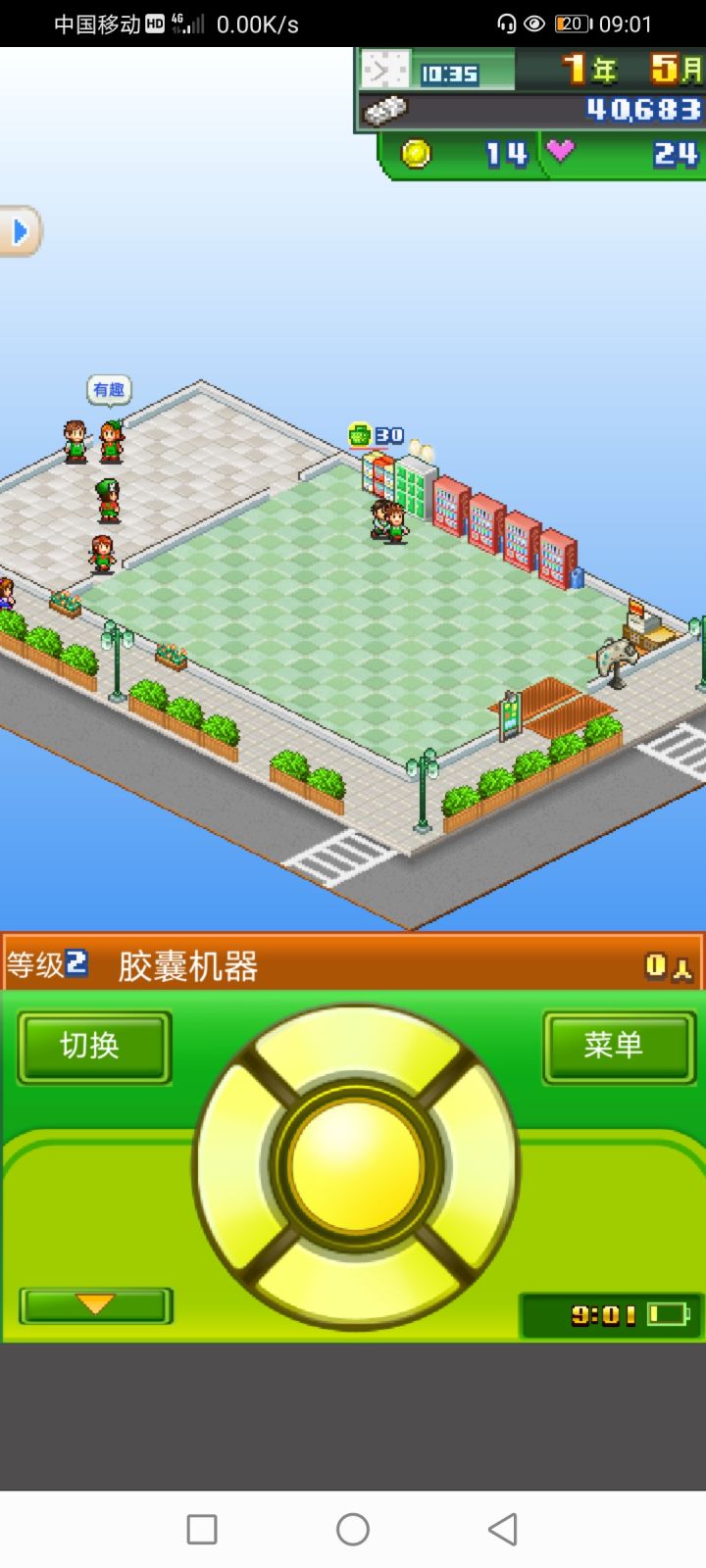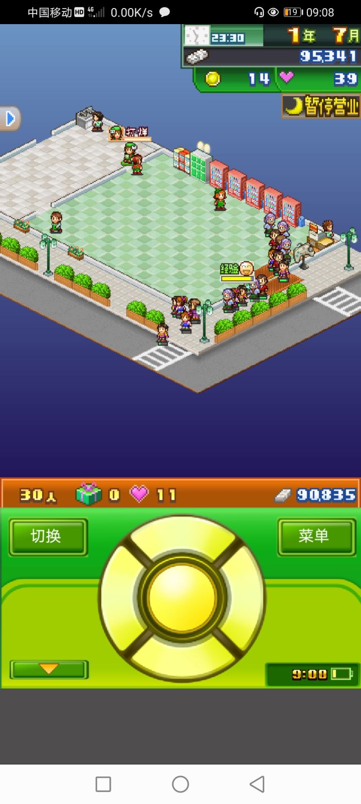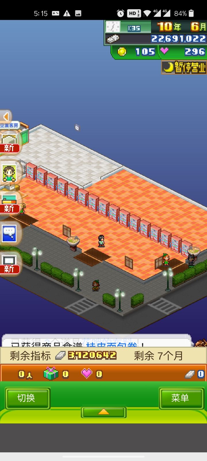 论一个无良商家的养成。建一所无人可乐商店,可以在前期积累一定的资金(防止爆毙(ಡωಡ))。买可乐时如果顾客所花的钱多于携带的钱(脚下绿条)时,就一定会掉落红心(没有礼包)并提升满足度。