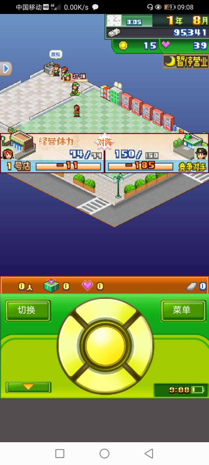 好想做攻略,先来几个我一开始玩吃的亏1.墙是可以关的,速度也可以调的更快2.员工休息室还有货架可以不用管方向,放在一起是没有问题的(其他的要,比如洗手台和书桌什么的)3.货架中间可以放东西,只要方向没有被挡住,货架可以面对面两个拿东西方向重叠。4.会出现竞争对手,打败了对面店长会找上门,如果你店长满了但是还想要对面的可以从自己现有的里面解雇几个不要的,放弃的那个店长会回来(时间也不能间隔半