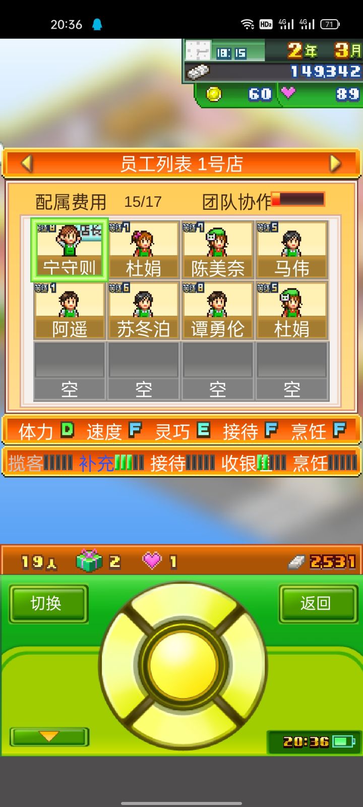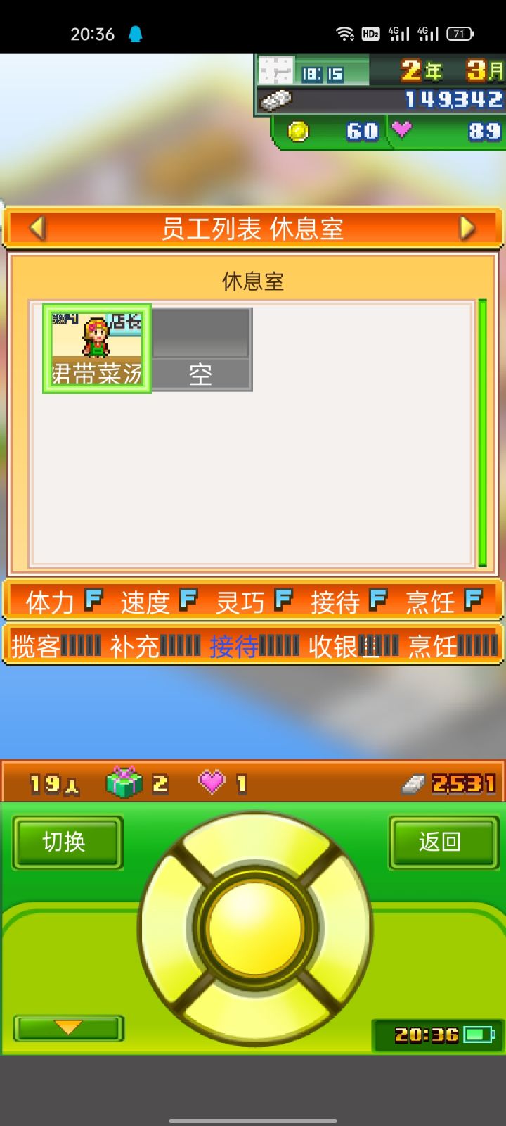 让我来教你们开局选择店铺1游戏店:难度(简单)新手建议选这个员工:2个敏捷型,1个体力型(放仓库)2服装店:难度(简单)新手建议选这个员工:2个敏捷型,1个体力型(放仓库)3汉堡店:难度(困难)个人推荐,不要选这个员工:1烹饪型,2敏捷型,1体力型(放仓库)我是选择游戏店的(本人)游戏店:的店长建议敏捷型~服装店的店长建议敏捷型~汉堡店的店长建议烹饪型。(敬请期待更新)点个关注呗[