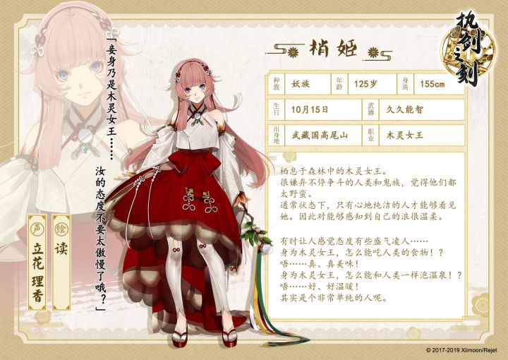 【异天津神降】限时UP 即将开启!木灵女王——梢姬(声:立花理香)栖息于森林中的木灵女王。通常状态下,只有心地纯洁的人才能够看见她,因此对能够感知到自己的#浪#很温柔。有时会让人感觉态度盛气凌人,但其实是一个非常单(ao)纯(jiao)的人呢……武士特长:中排治疗型武士,治疗队员时还能提升队友的闪避能力和伤害。随性稀人——紫樱(声:村濑步)因为某人的怨念,从樱花树中诞生的稀人。曾经跟鹤间