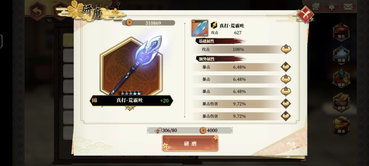 首先说明两点:1.专属武器制作完成后如果对剑质、或者孔数不满意可以继承给其他武器,但要消耗一个本命之心或者一个绯之心玉2.专属武器制作完成后只有专属武士能用,其他人用不了,所以武器少的人不着急制作下面是图文攻略一:首先选择你需要的武器,把他制作成专武,这里我选的是集气做完以后你的武士界面会是这样进阶、同调是什么意思。首先我们讲进阶,进阶就是让你的专武效果解放,如下图进阶需要消耗“本命