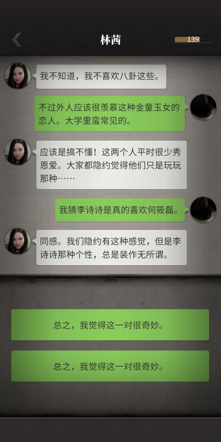 玩了一下觉得很吸引人,当时就搞了个全解锁。剧情方面个人感觉很不错了,但是有的时候,交流内容有病句,看着也明白意思,但是挺不舒服的。