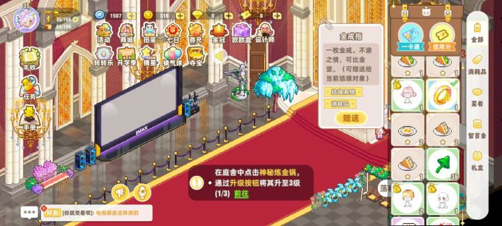 朋友花了10万买了场地,她提前买好了戒指,我到场地之后,仪式开始,提示我们一起站到仪式台上,我购买了戒指,在台上自动送给对方了,但是她提前买的戒指却送不出去,然后仪式也没显示完成,2小时之后会自动结束,现在情况是,我现场买的戒指已经给了她,但是她买的戒指送不出来,不知道2个小时之后,仪式算不算完成,如果没完成的话10万白花了,有没有人知道是怎么回事啊#结缘 #皮卡堂手游 #皮卡堂之梦想起源 #皮卡