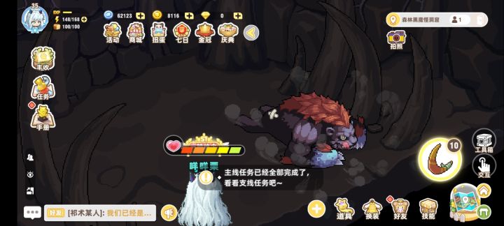 地点:迷途森林5,点击告示牌进入。每日仅可击败领取奖励一次,速刷12个寒冰箭或20个回旋镖(注意武器级别)击败一只,建议备足武器前往。黑魔怪攻击大概在射出1发或2发后发动一次,留意红色的攻击区域注意走位。每个传送点走一遍,当日传送到下一个区域的传送点固定。亦可蹭蹭花丛,藤蔓概率把自己甩去下一个场景。