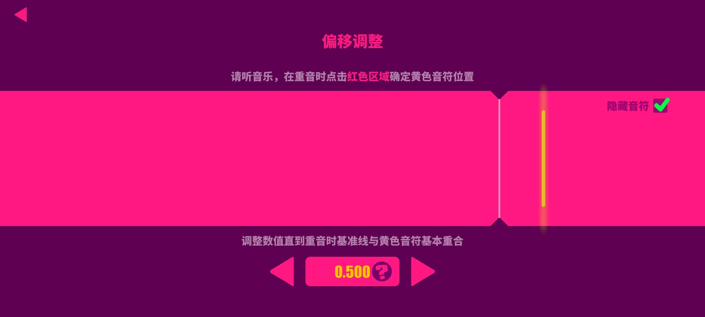新买了手机,新玩的时候发现打击点太超前了,结果来调偏移值发现最大0.5都显得有点不够。现在只能0.5凑合着了