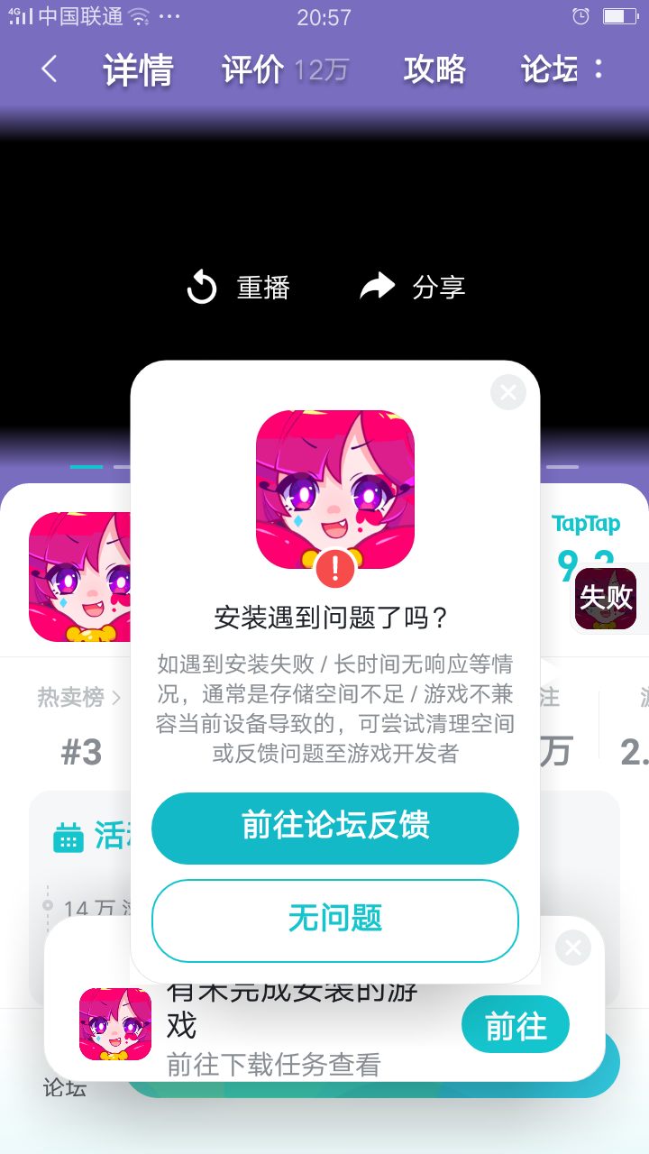 安装问题反馈设备品牌: sdm660设备型号: OPPO R11 PlusAndroid 系统版本: 8.1.0厂商系统版本: oppo V5.2.1游戏版本: 3.1.0