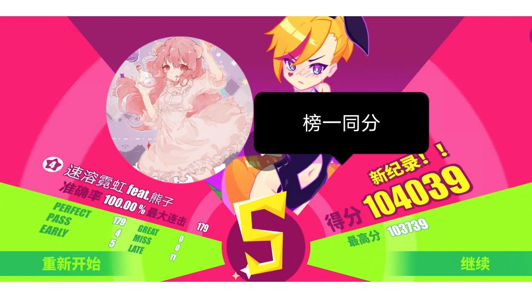 分数:1604065 目前pe排行榜第二 曲包:Nanahira Festival 配置:兔女郎 小龙女 58开fever 71进fever 131开fever 145进fever 198开fever 213进fever(注:必须198打late同时开fever 213打early 极难) 261开fever 270进fever