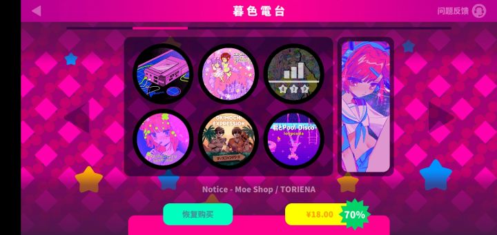 1.关于难度的担心:可能听说这是音游才来的小伙伴,有些担心难度过高,手残玩不了的问题,其实,音游一个曲子都有多个难度,循序渐进就好。2.如何屏蔽不喜欢的曲子:遇到喜欢的曲子可以点击下方爱心,加入收藏,然后在曲包选择中,选择收藏的曲子,这样就能屏蔽掉不喜欢的曲子了。3.梦游是什么的,为什么控制不了:梦游可以当音乐播放器,解放你的双手,将游戏变成听歌模式(不是),其实梦游是帮助有读谱困难的大佬读谱
