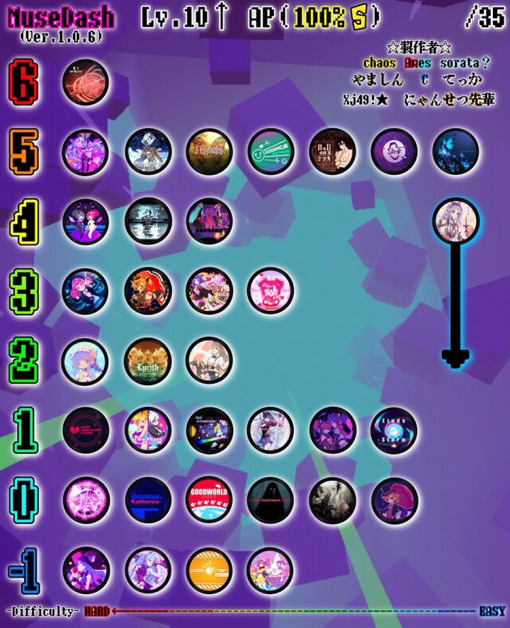 制作者:见图右上角难度排名:纵向排列上难下易横向排列左难右易noel看个人手感