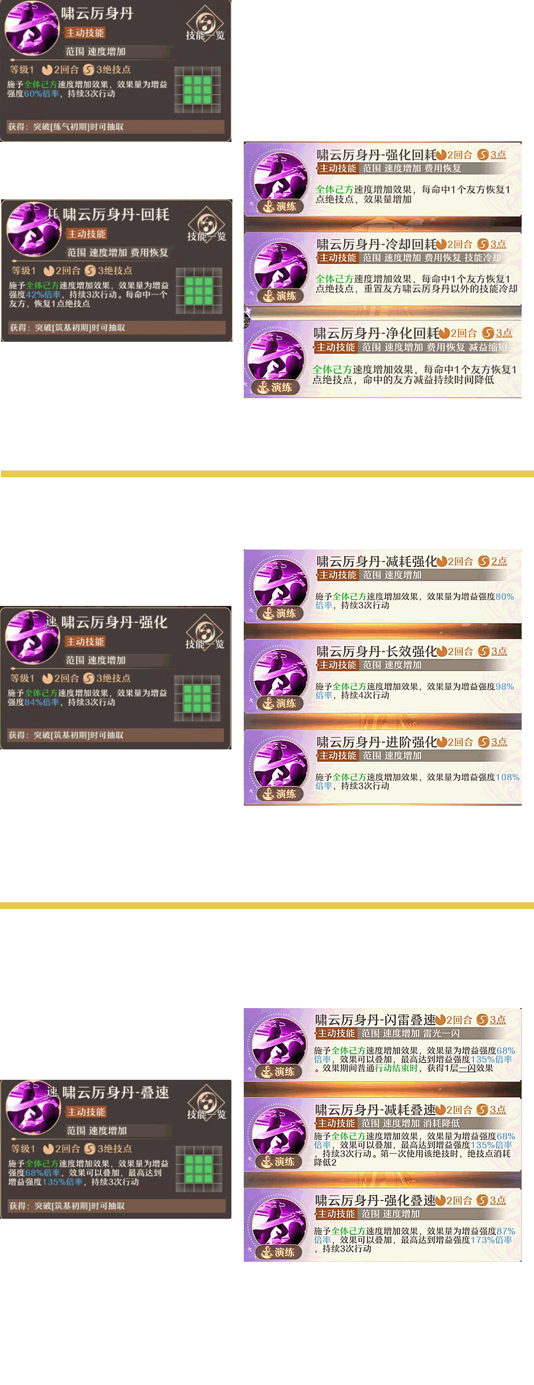t0:湘湘(湘湘·祀幽锻体)t1:小憩(渡坤·午间小憩)、琴韵(燕伶·琴韵春熙)过渡用紫卡:妹妹(蓝婉金·妹妹的身影)过渡用金卡:林峰(林峰·不可松懈)t2:莲糖(莲糖·不要捣乱)、意外(于世·纯属意外)、仙途(陆云及·逍遥仙途)其他:执明(执明·韬光养晦)t0 湘湘:t1属性(+35,+15,+65),t0技能,只要进图卡池有2张体质卡,体质修炼时都会加30体,神卡t1渡坤:t0