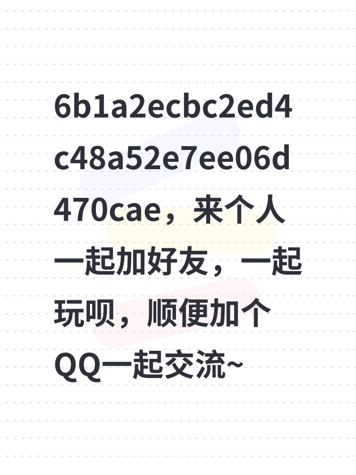 6b1a2ecbc2ed4c48a52e7ee06d470cae,来个人一起加好友,一起玩呗,顺便加个QQ一起交流~