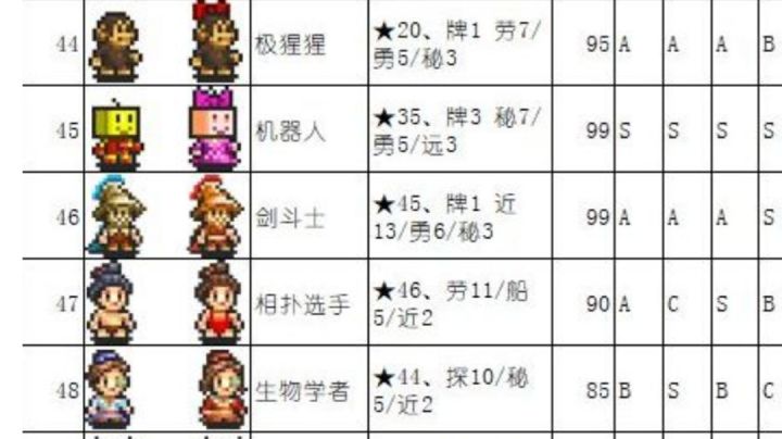介于挺多朋友在找43位后的职业,所以把后续职业用作封面,只要达到相应转职需求就会出现对应的职业如极猩猩为:精通20、劳(工)7、勇5、秘3,达到需求就出现极猩猩这个职业了。(图不完整,最后一个职业为魔界斗士:精通47、秘14、勇7、远3)评论区还有些小细节供参考,会不定时修改帖子补上能想到的已体验过的小技巧。(欢迎留言提问。)参考[HAO]大佬的攻略换上了耗体力低的建筑,三排训练区每排13个房
