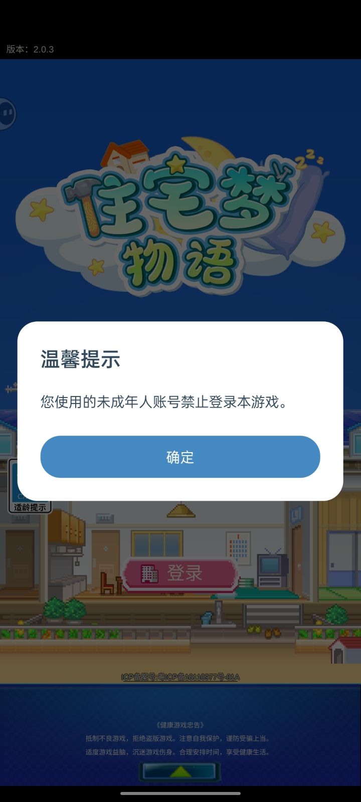 #萌新求助 #住宅梦物语TapTap测试版 我的账号是认证过的已成年账号,玩其他的游戏也都没有问题,在选择登录方式的时候无论是雷霆帐密还是taptap账号都无法登录,显示图上的提示,请问这种情况怎么调理😭