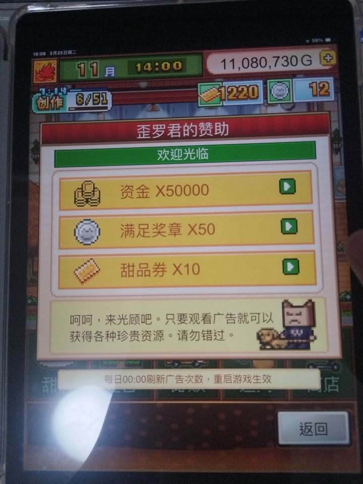 #创意蛋糕店 抽奖这里也没法看广告了,歪罗赞助会跳转到图3的界面,到底要怎么积攒抽奖次数啊